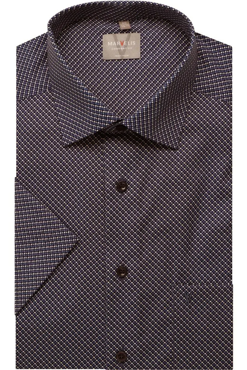 Marvelis overhemd korte mouw in een zwart en grijs fantasie design. Overhemd heeft een borstzakje in 100% katoen strijkvrij in model comfort fit.