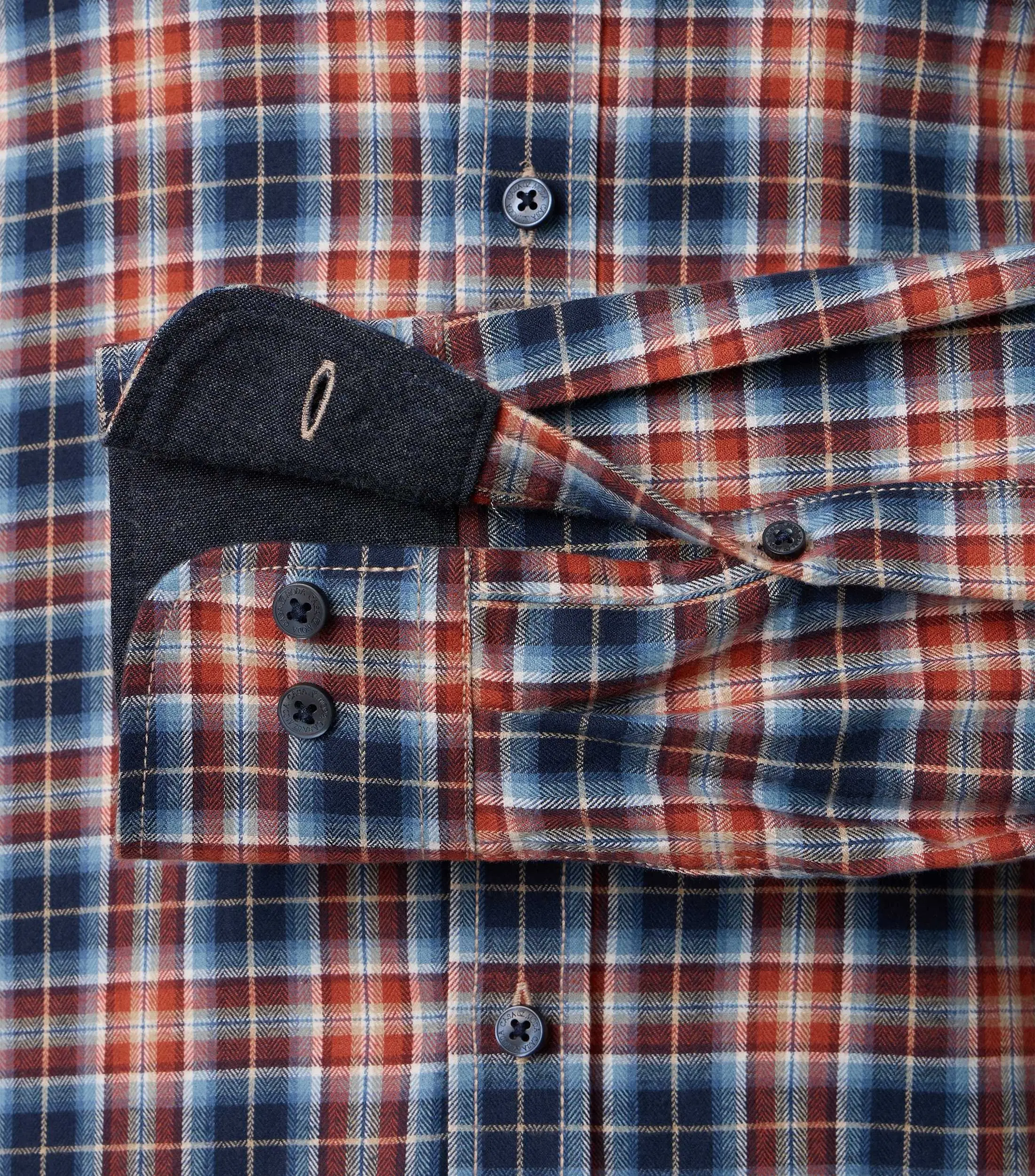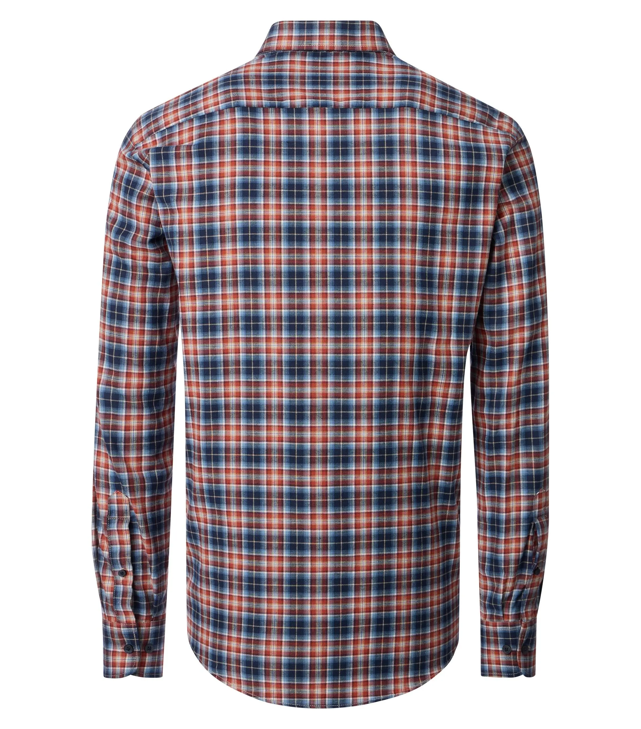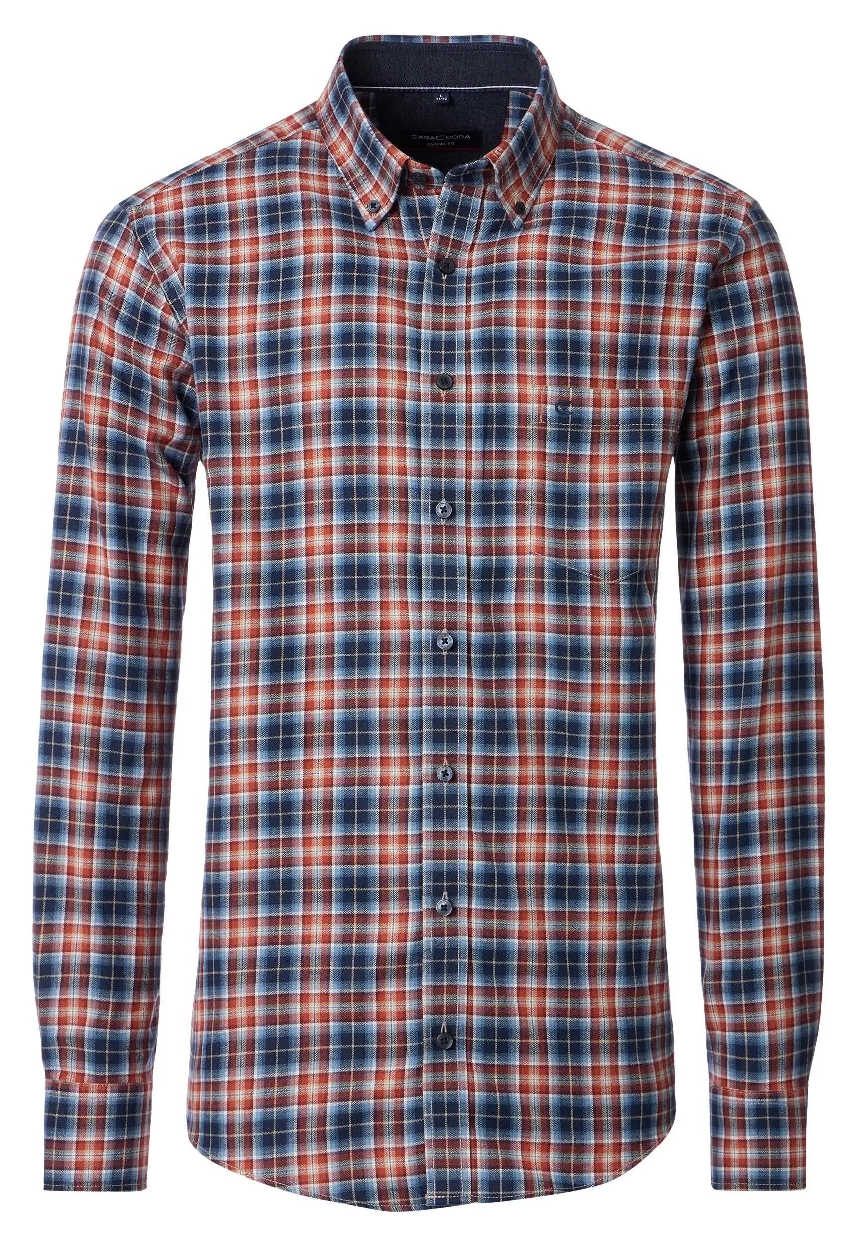 Casa Moda overhemd lange mouw met borstzak in een blauw en brique ruit design met kraag button down. Model comfort fit 100% katoen in flanel.