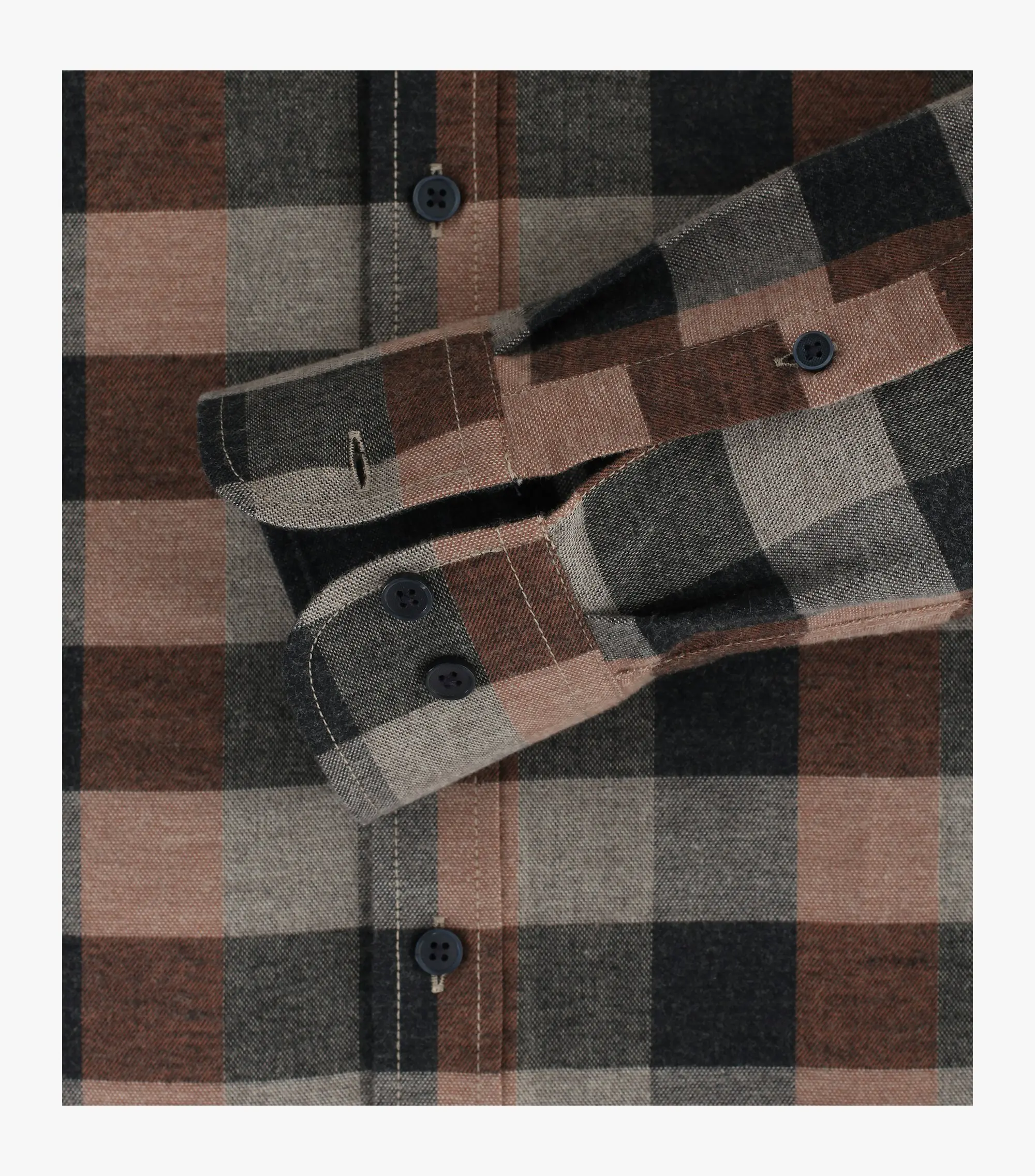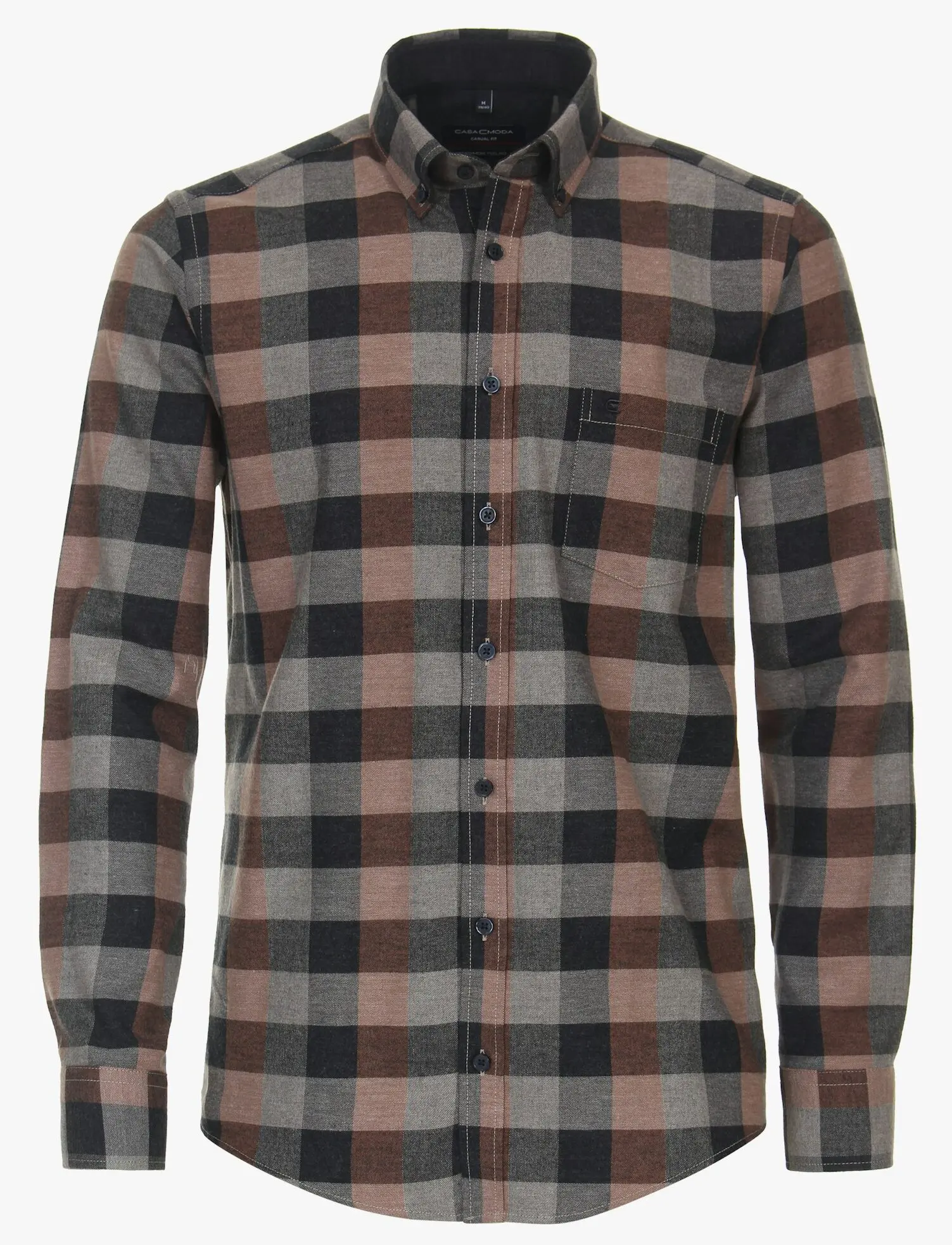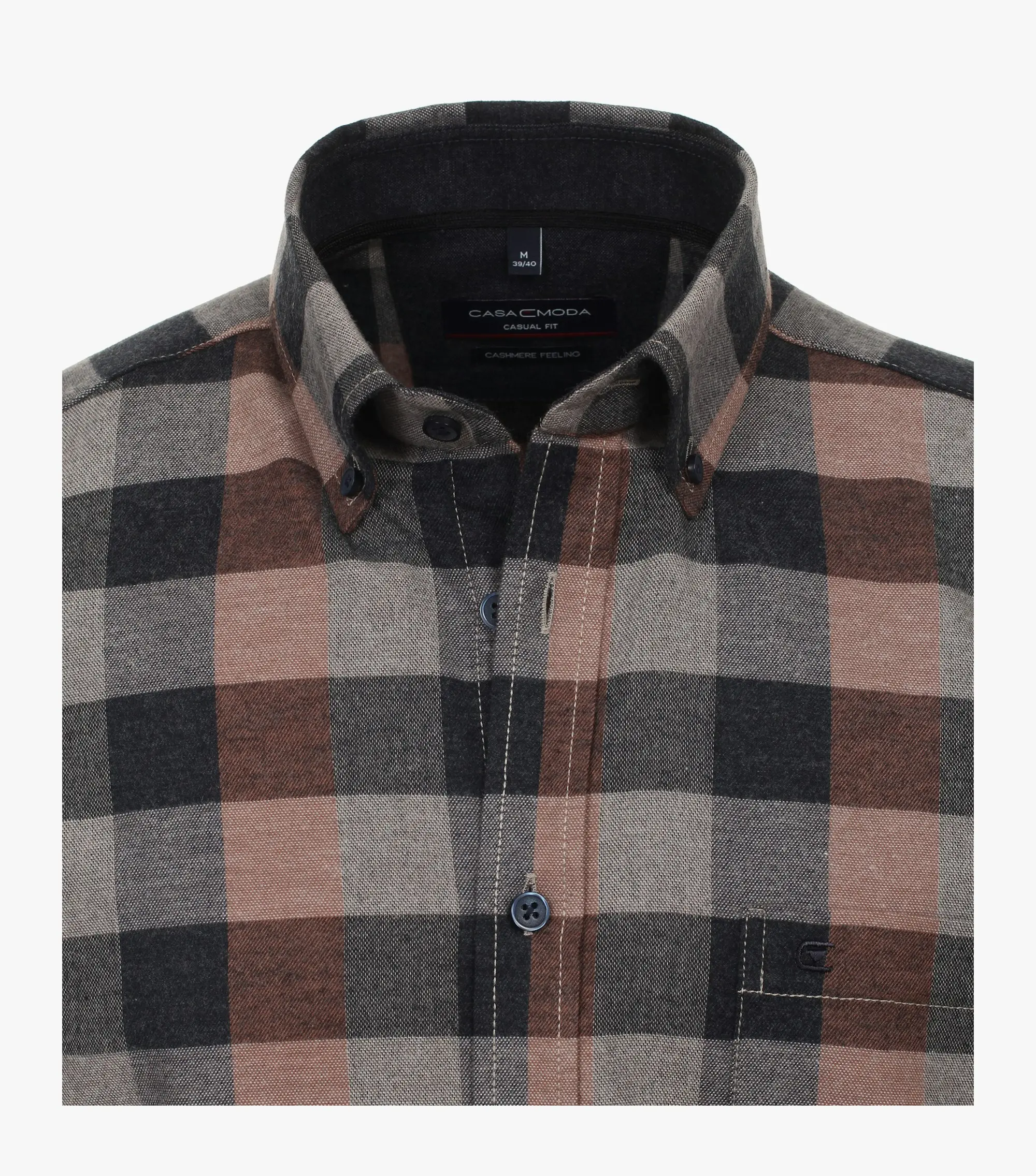 Casa Moda overhemd lange mouw met borstzak in een bruine ruit met kraag button down.