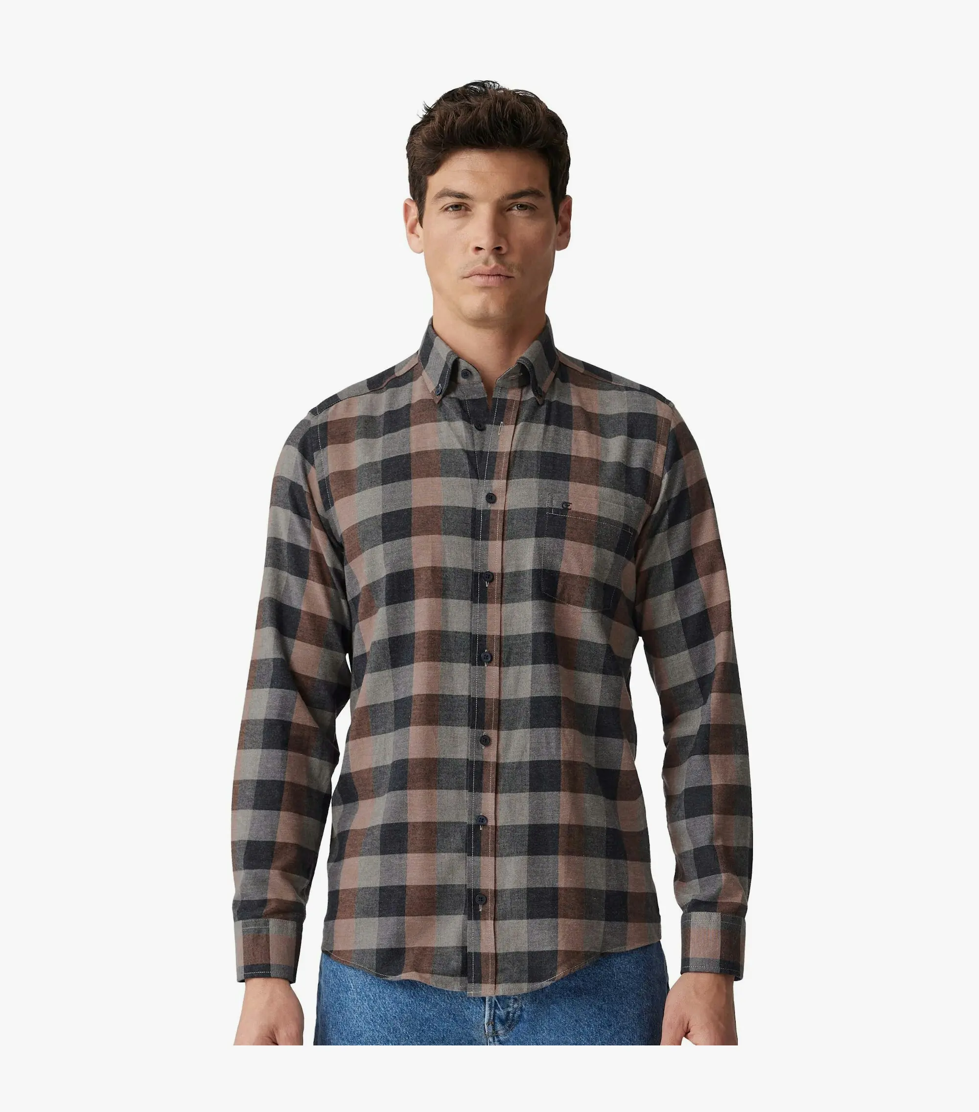 Casa Moda overhemd lange mouw met borstzak in een bruine ruit met kraag button down.