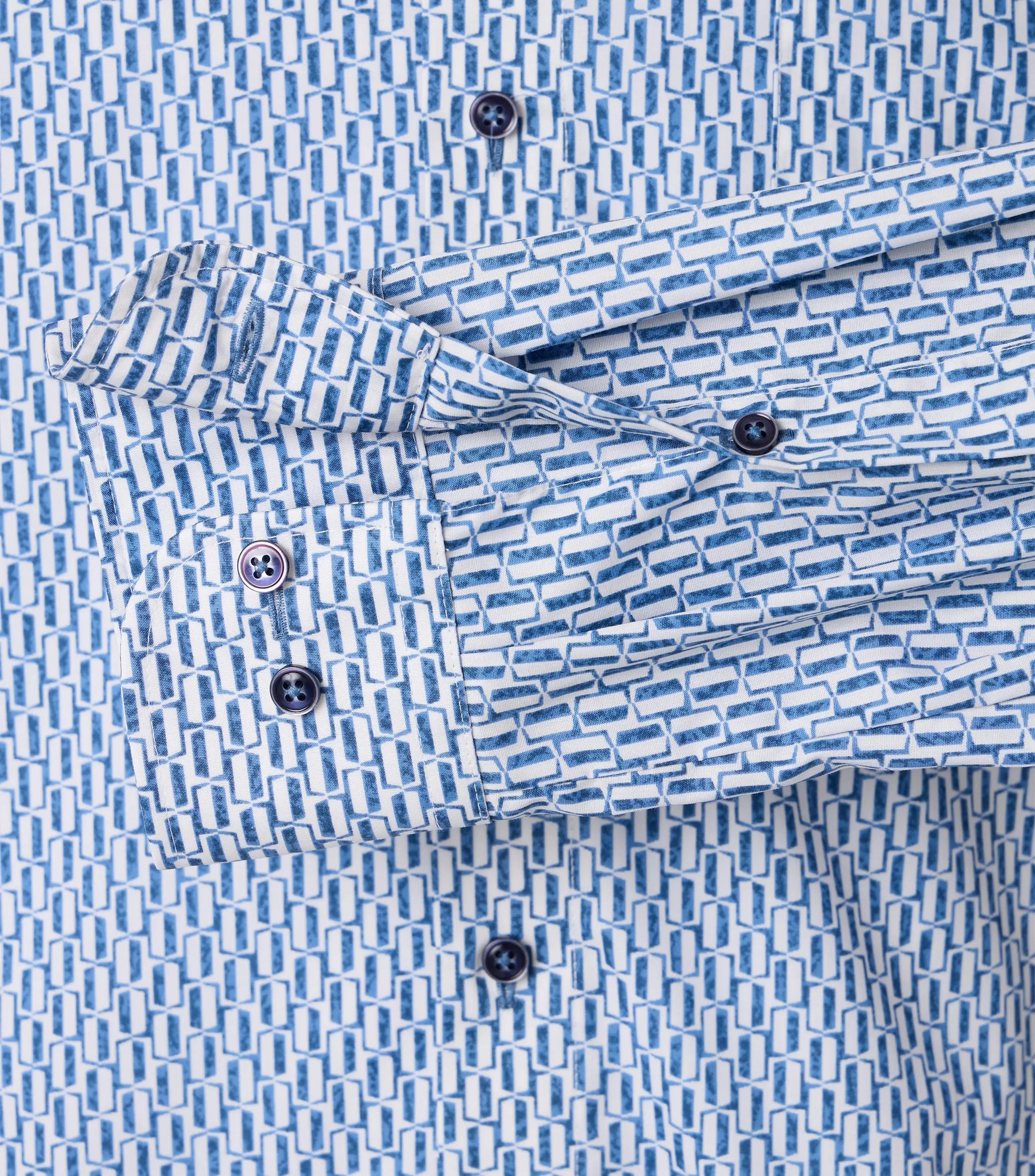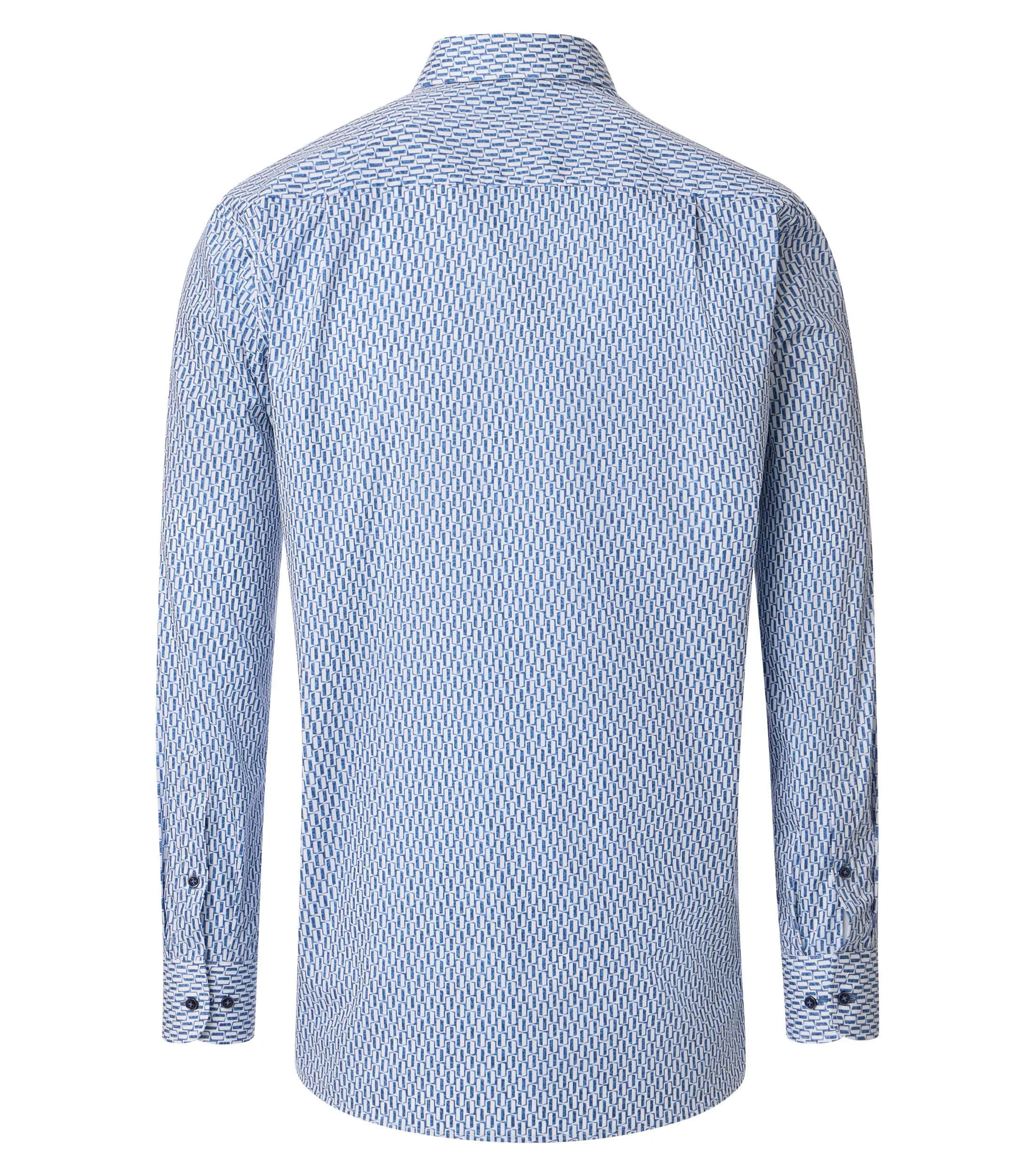 Casa Moda overhemd lange mouw met borstzak in een blauw en wit fantasie design. Model comfort fit 100% katoen.