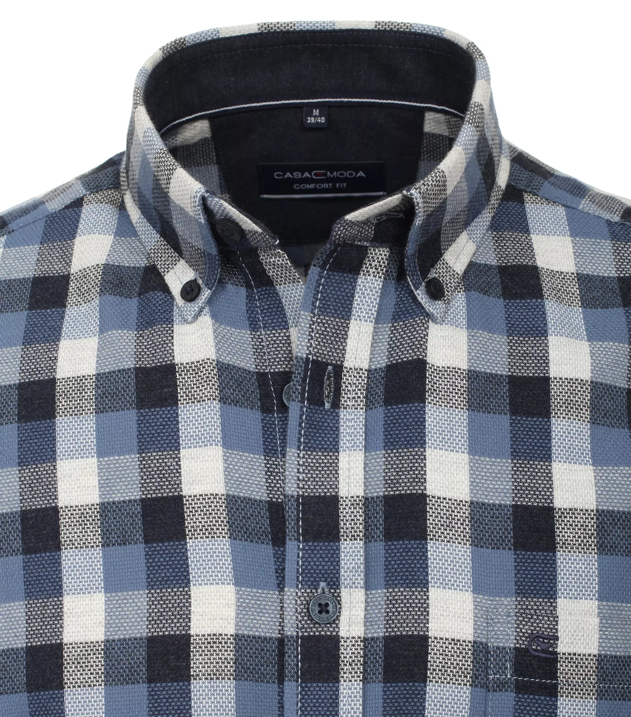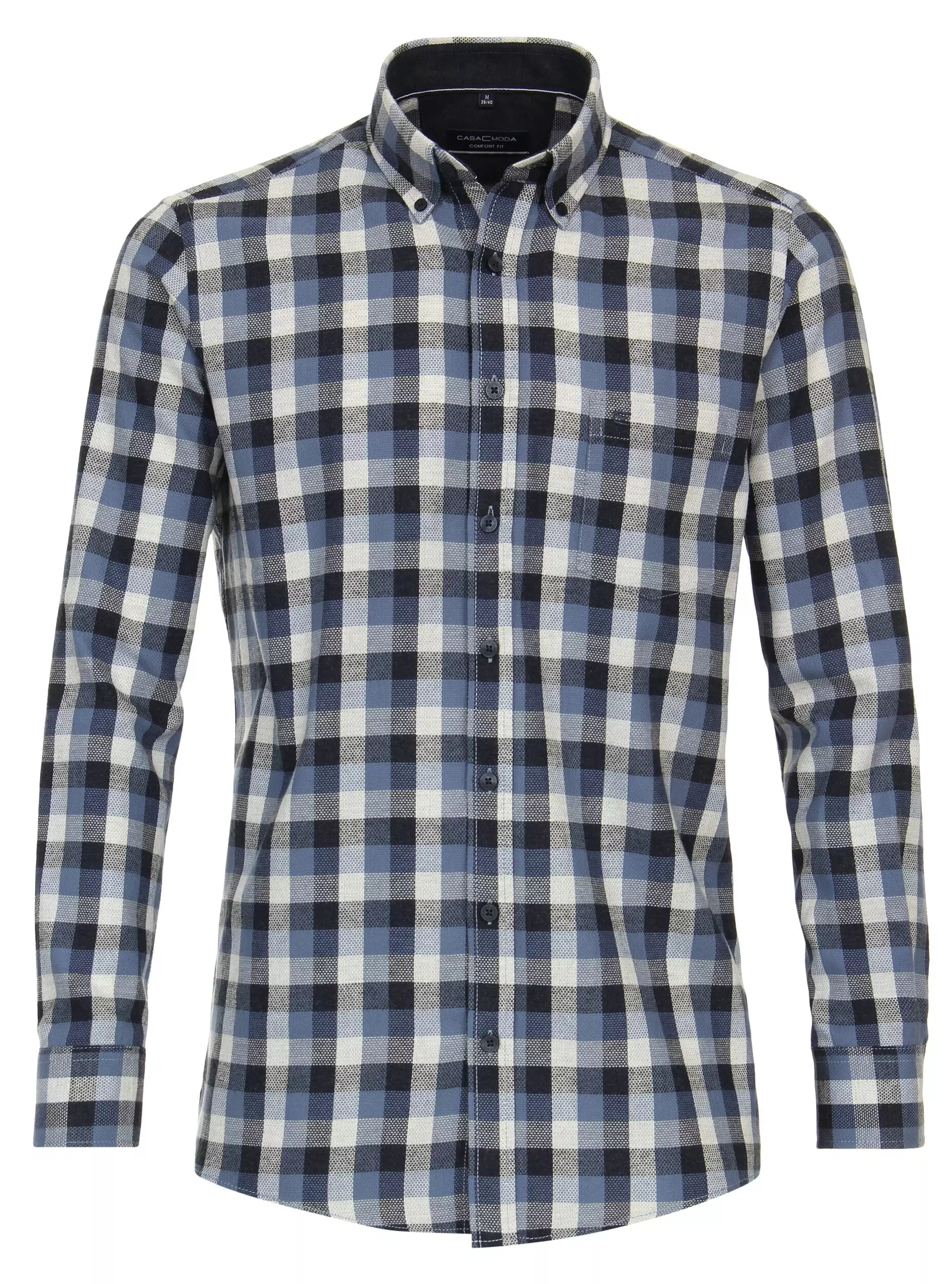 Casa Moda overhemd lange mouw met borstzakje in een blauw en witte ruit met kraag button down. Model comfort fit in 100%katoen flanel easy care.