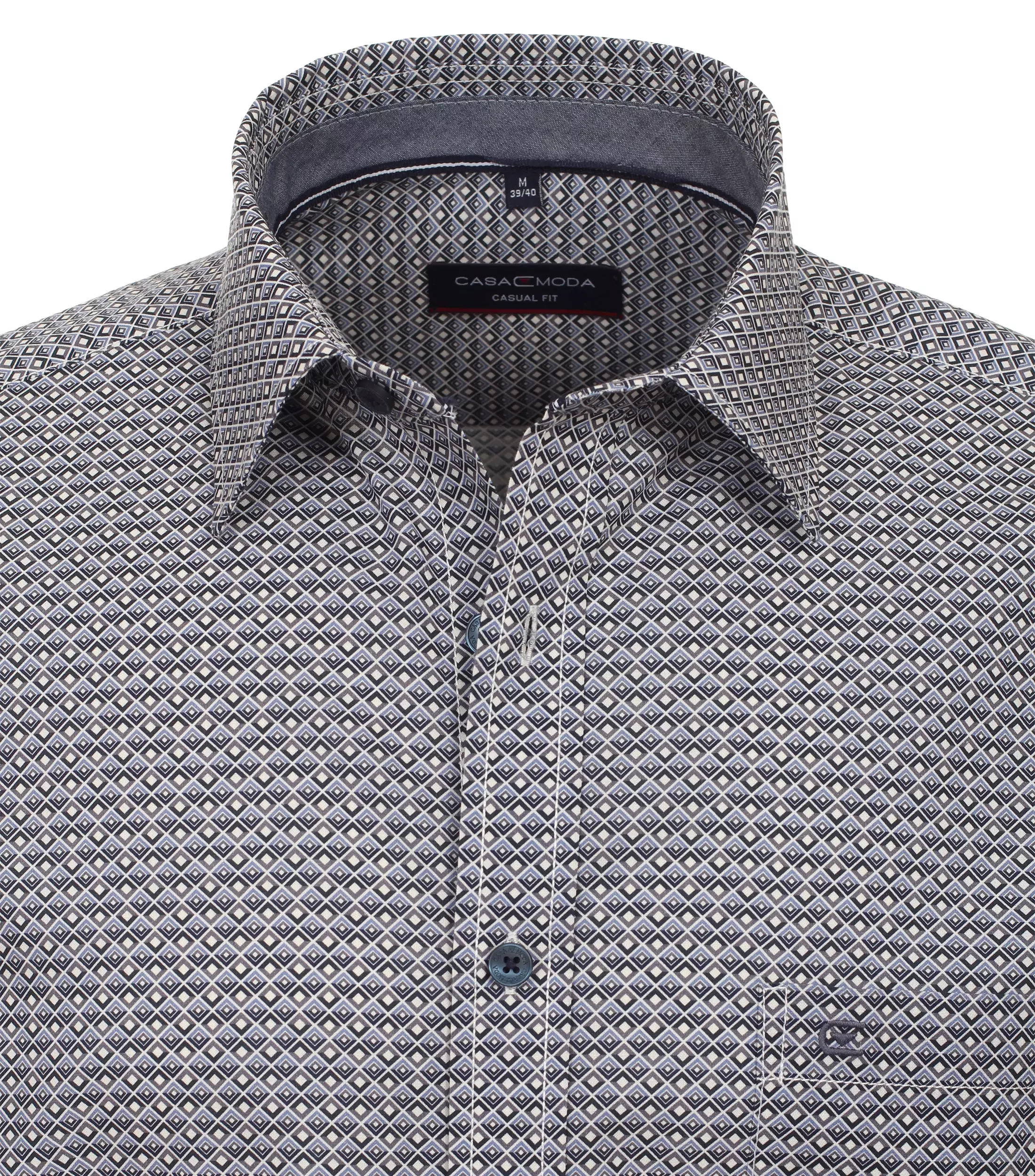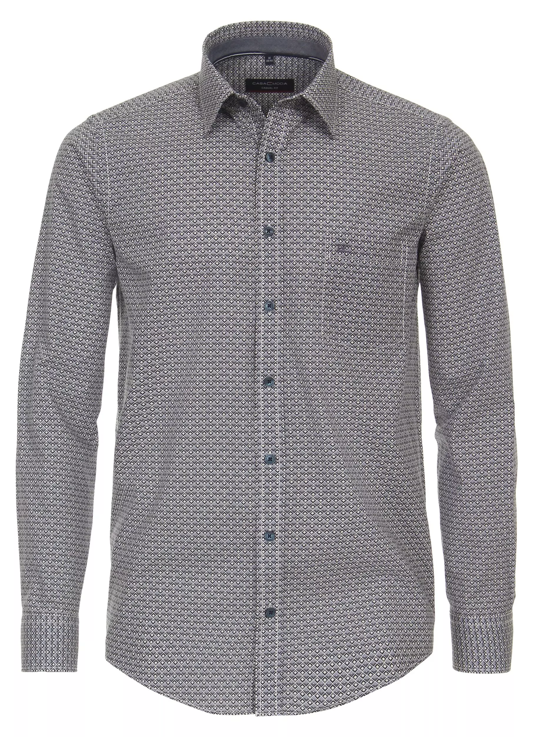 Casa Moda overhemd lange mouw met borstzakje in een blauw en grijs design. Model comfort fit in 100%katoen easy care.