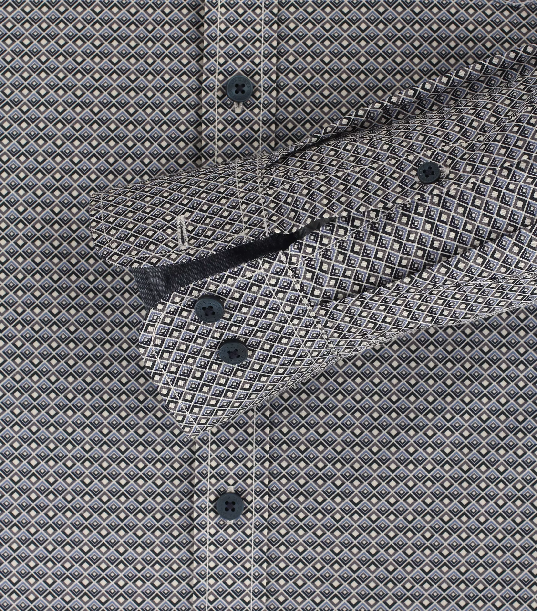 Casa Moda overhemd grote maat lange mouw blauw en grijs fantasie design. Model comfort fit 100% katoen easy care.