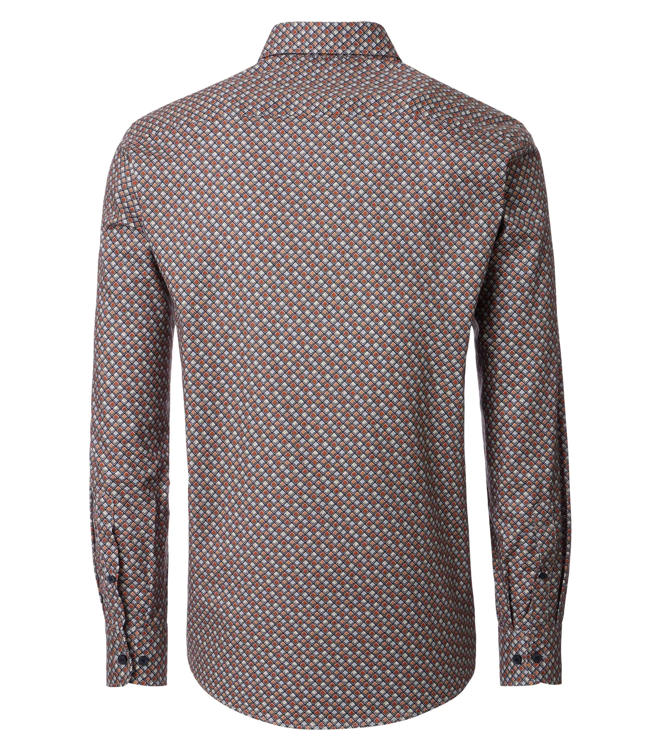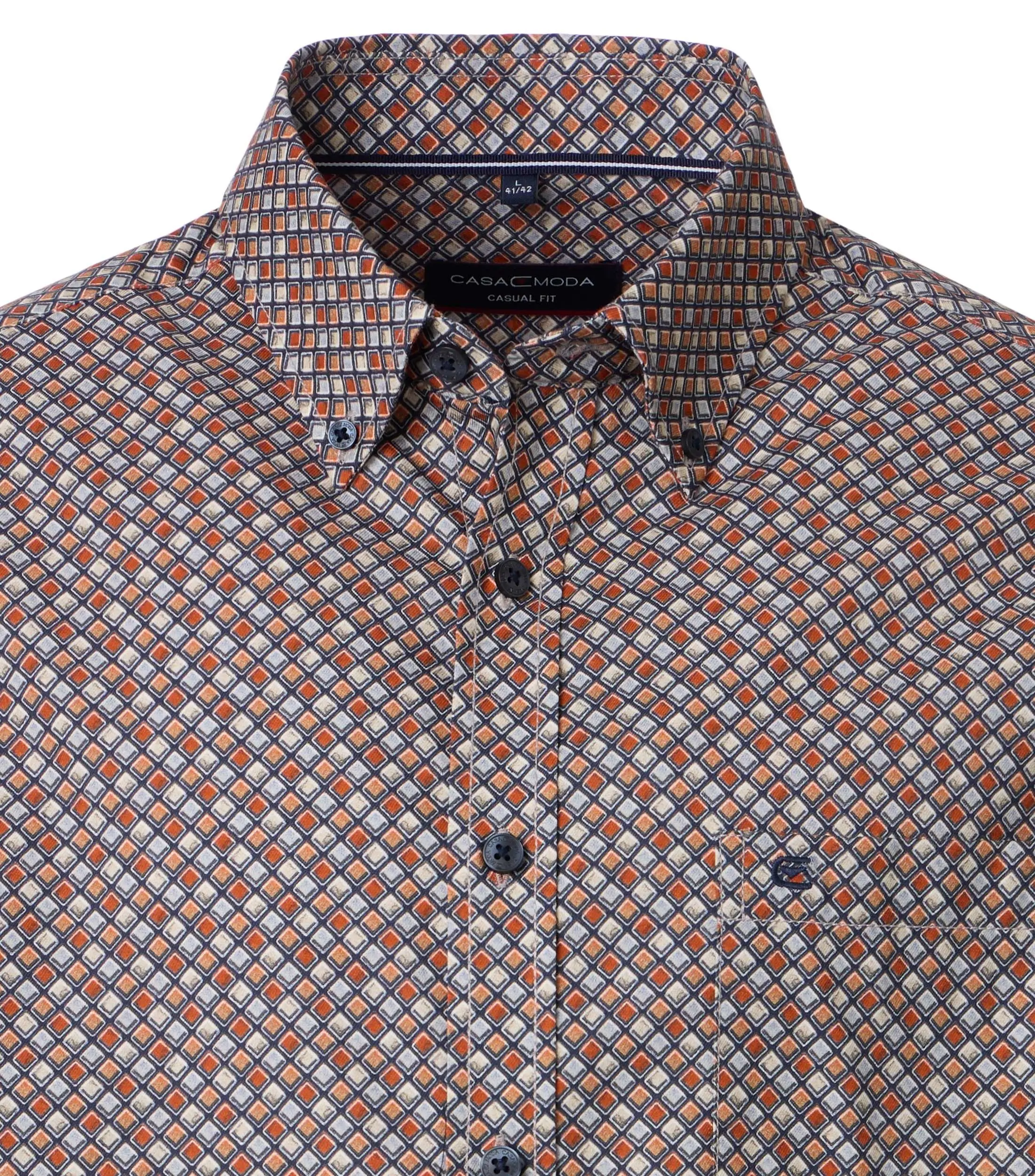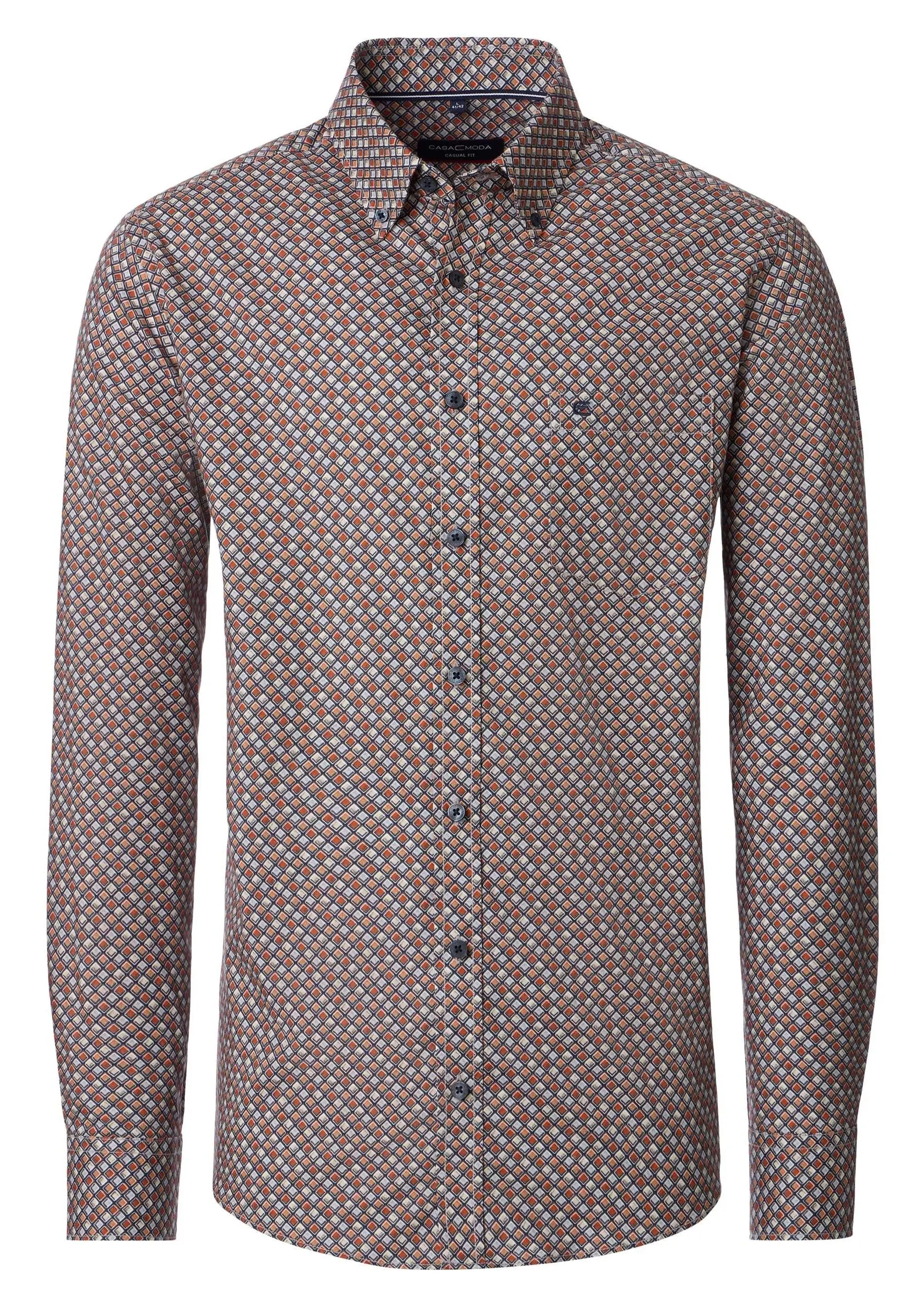 Casa Moda overhemd lange mouw met borstzak in een camel en blauw fantasie design met kraag button down. Model comfort fit 100% katoen.