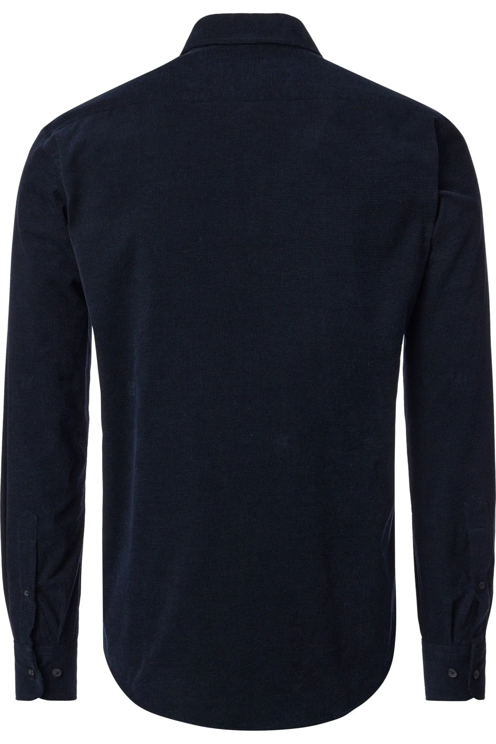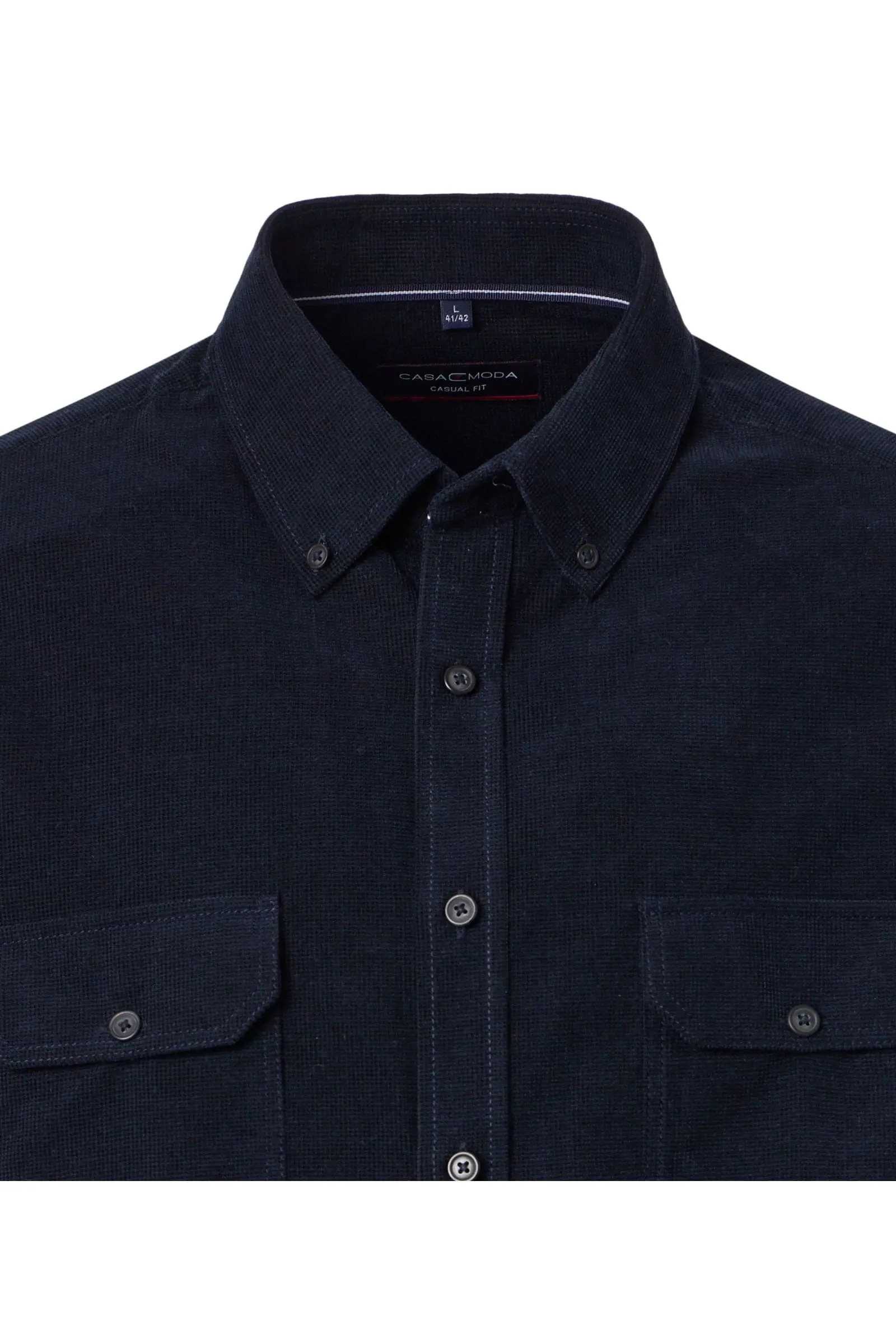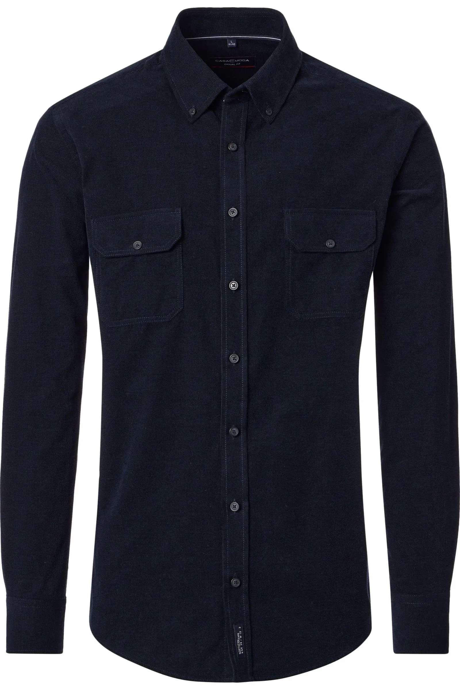 Casa Moda overhemd lange mouw met dubbele borstzakken met kraag button down in donkerblauw design. Model casual fit 100% katoen velours.