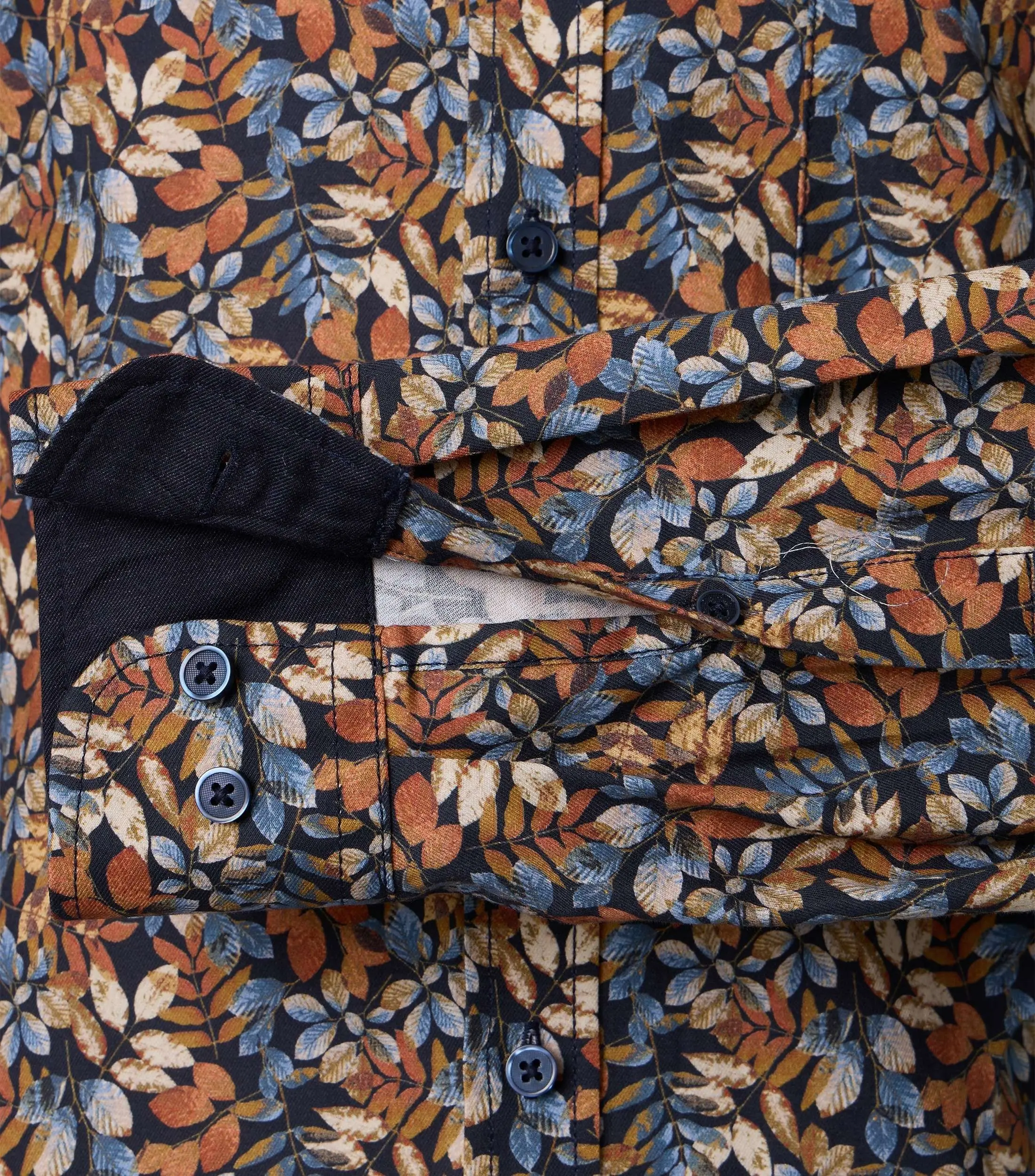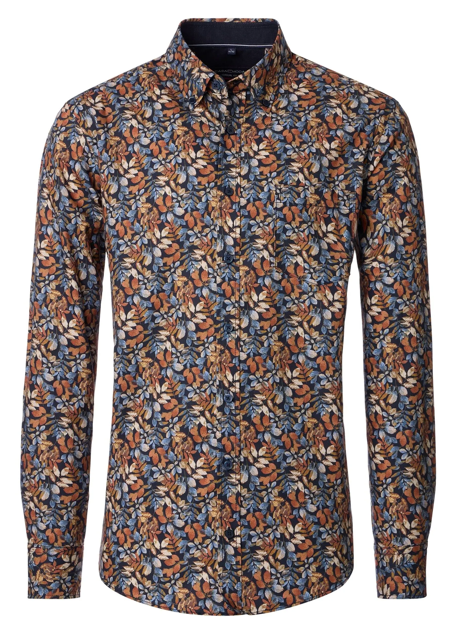 Casa Moda overhemd lange mouw blauw en camel design. Model comfort fit 100% katoen.