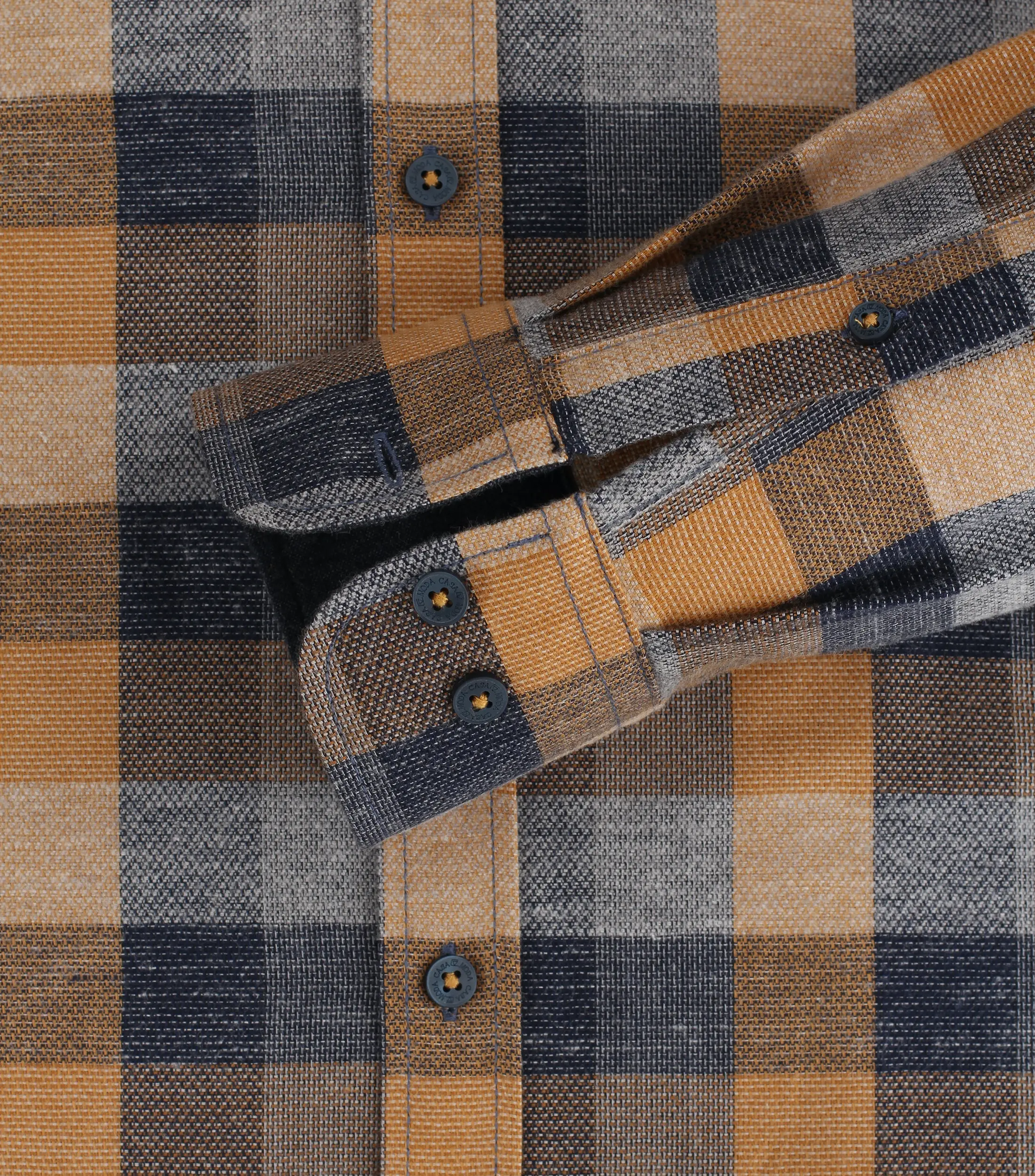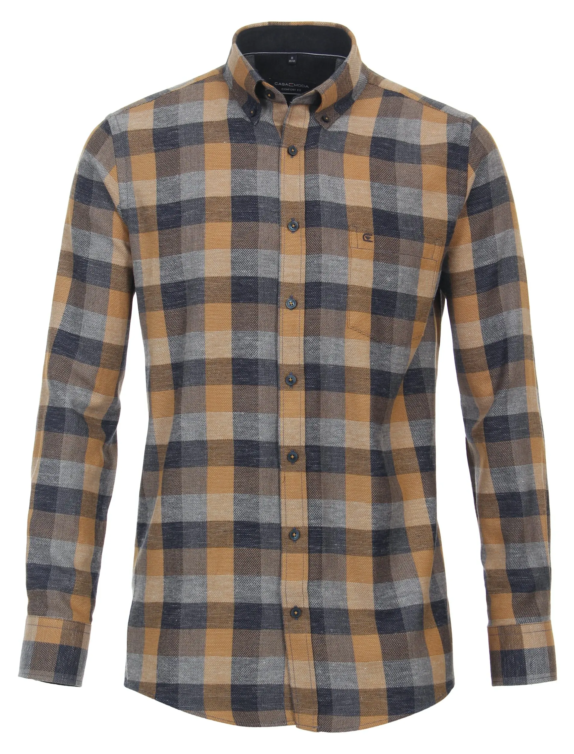 Casa Moda overhemd lange mouw met borstzakje in een blauw, camel en grijze ruit. Binnenkant kraag en manchetten zijn afgewerkt met een contrasterend stofje. Model comfort fit in 100% katoen.