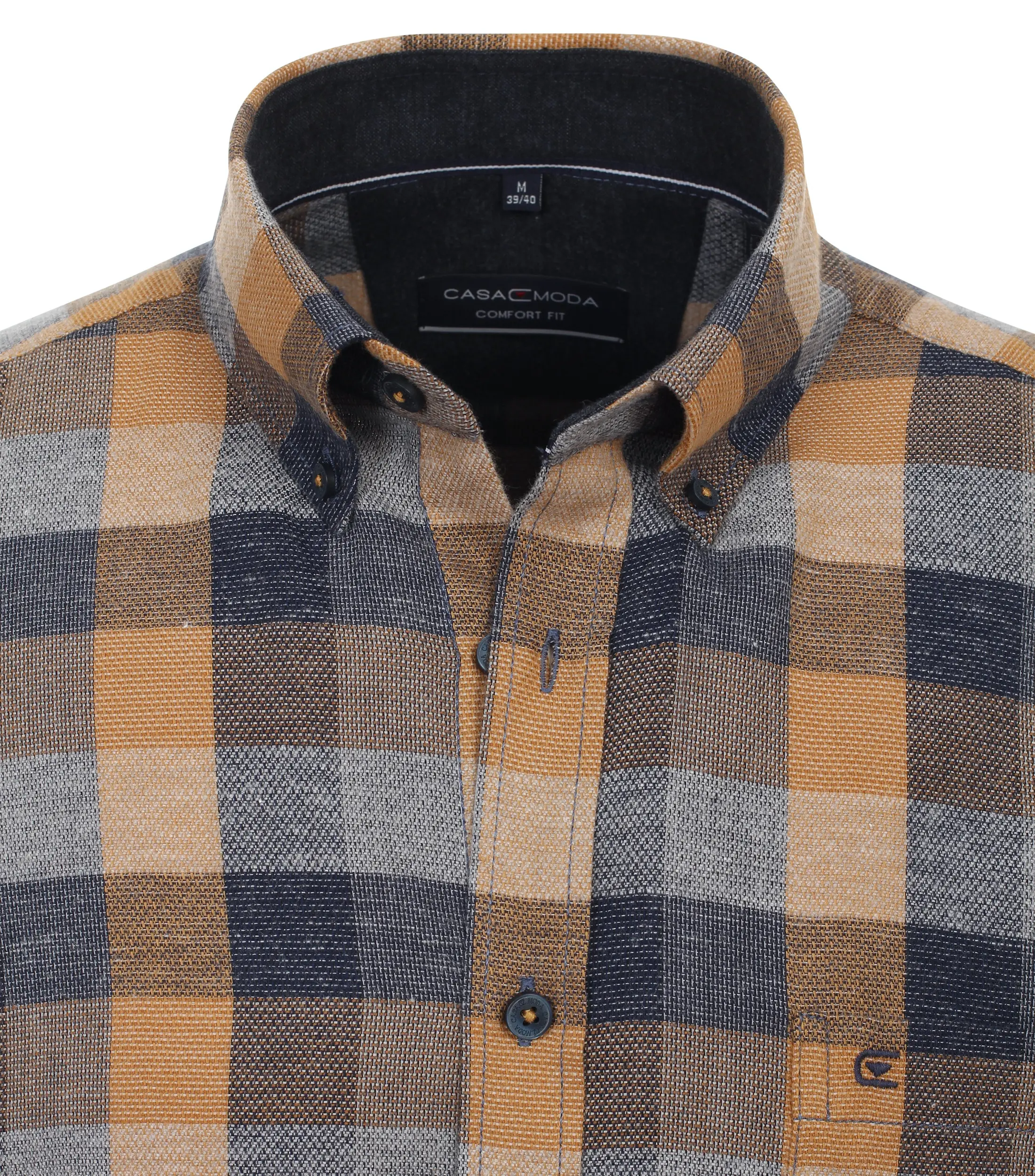Casa Moda overhemd lange mouw met borstzakje in een blauw, camel en grijze ruit. Binnenkant kraag en manchetten zijn afgewerkt met een contrasterend stofje. Model comfort fit in 100% katoen.