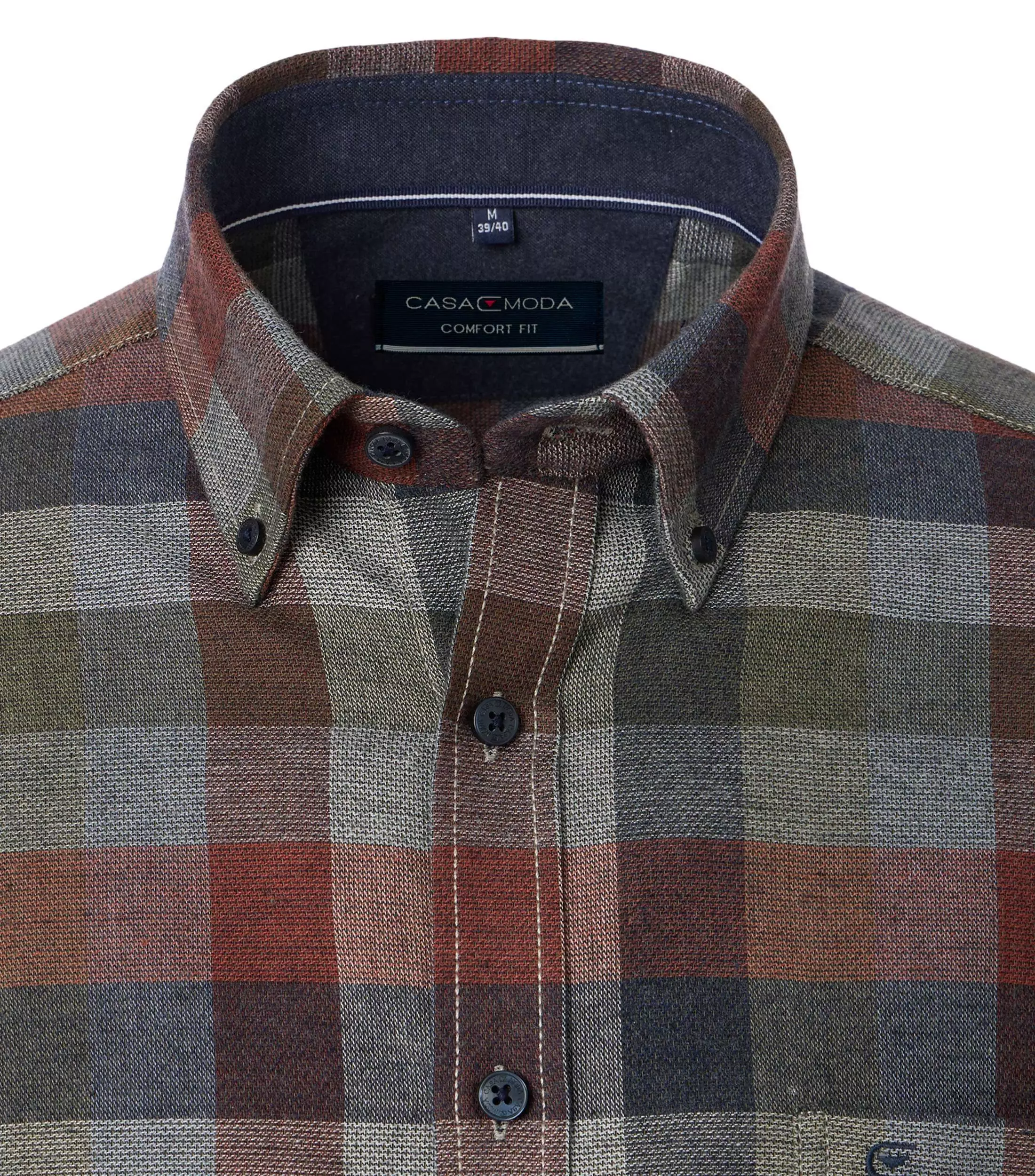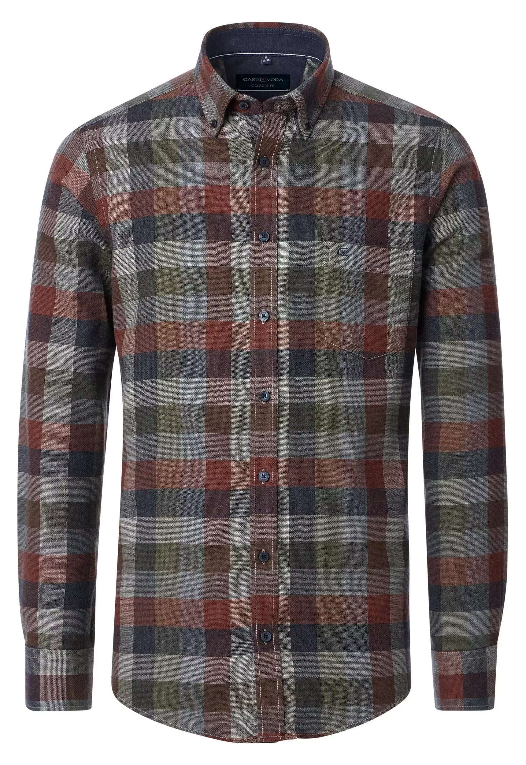 Casa Moda overhemd lange mouw met borstzak groen grijs en bordeaux ruit button down. Model comfort fit 100%katoen.