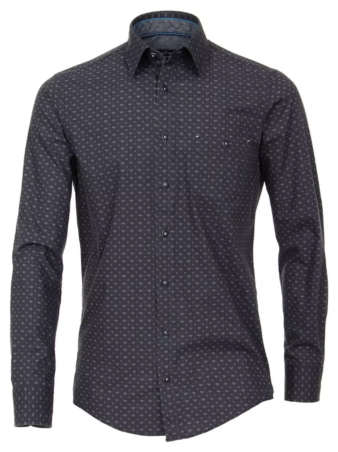 Casa Moda overhemd lange mouw antracietgrijs met een lichtgrijs fantasie werkje. Binnenkant kraag en manchetten zijn met een contrasterend stofje afgewerkt. Op de linkerkant van de borst een borstzakje. Model casual fit in 100% katoen.
