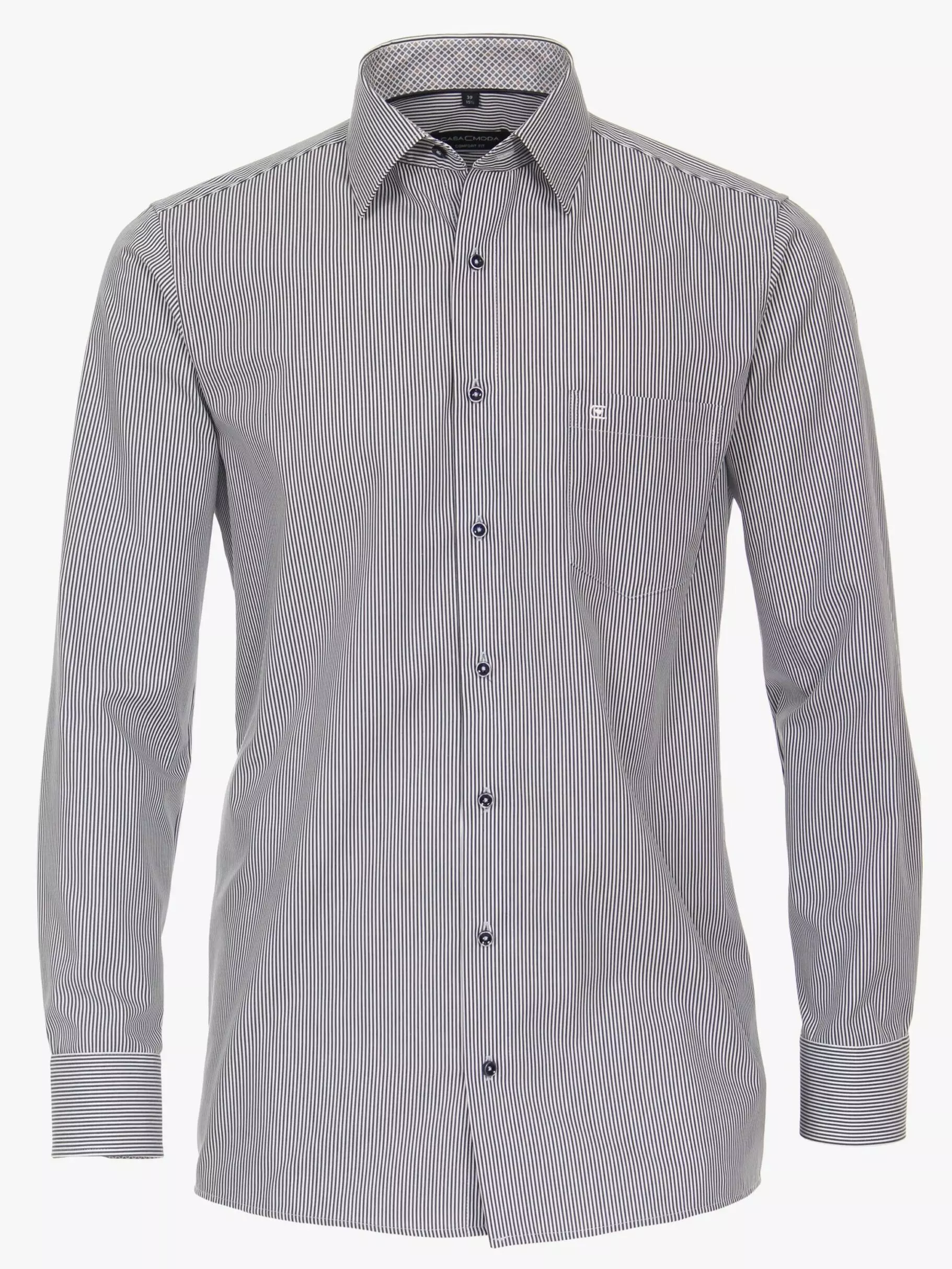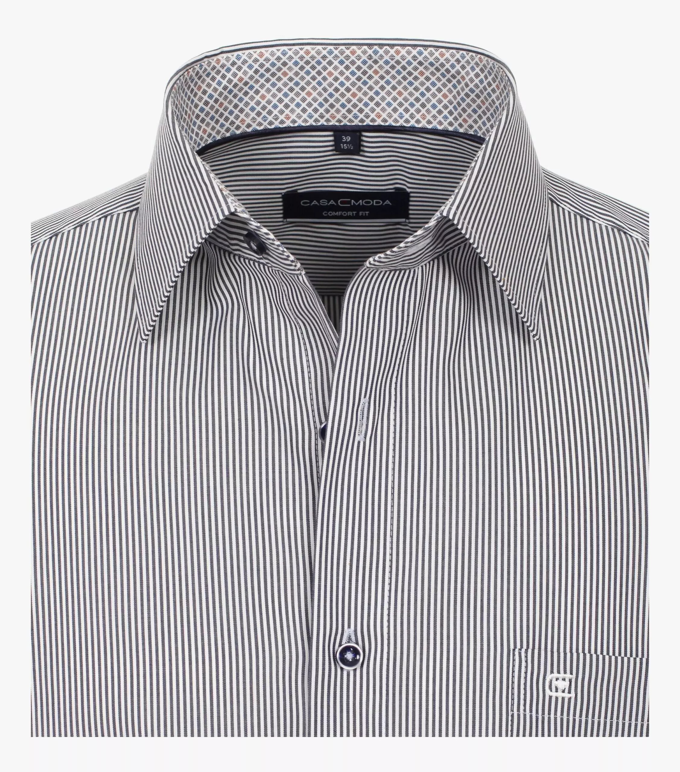 Casa Moda overhemd lange mouw met borstzakje in een blauw en lengte streepje. Model comfort fit 100%katoen strijkvrij.