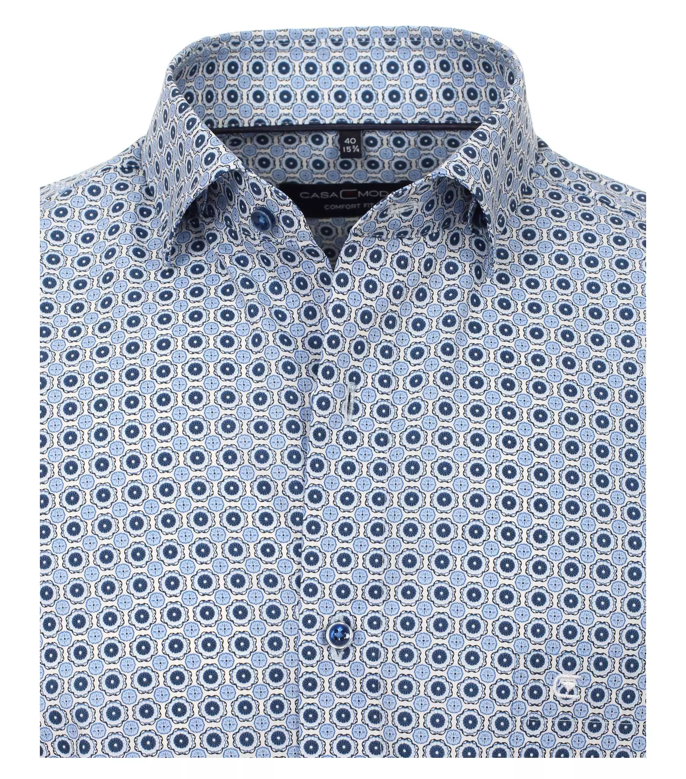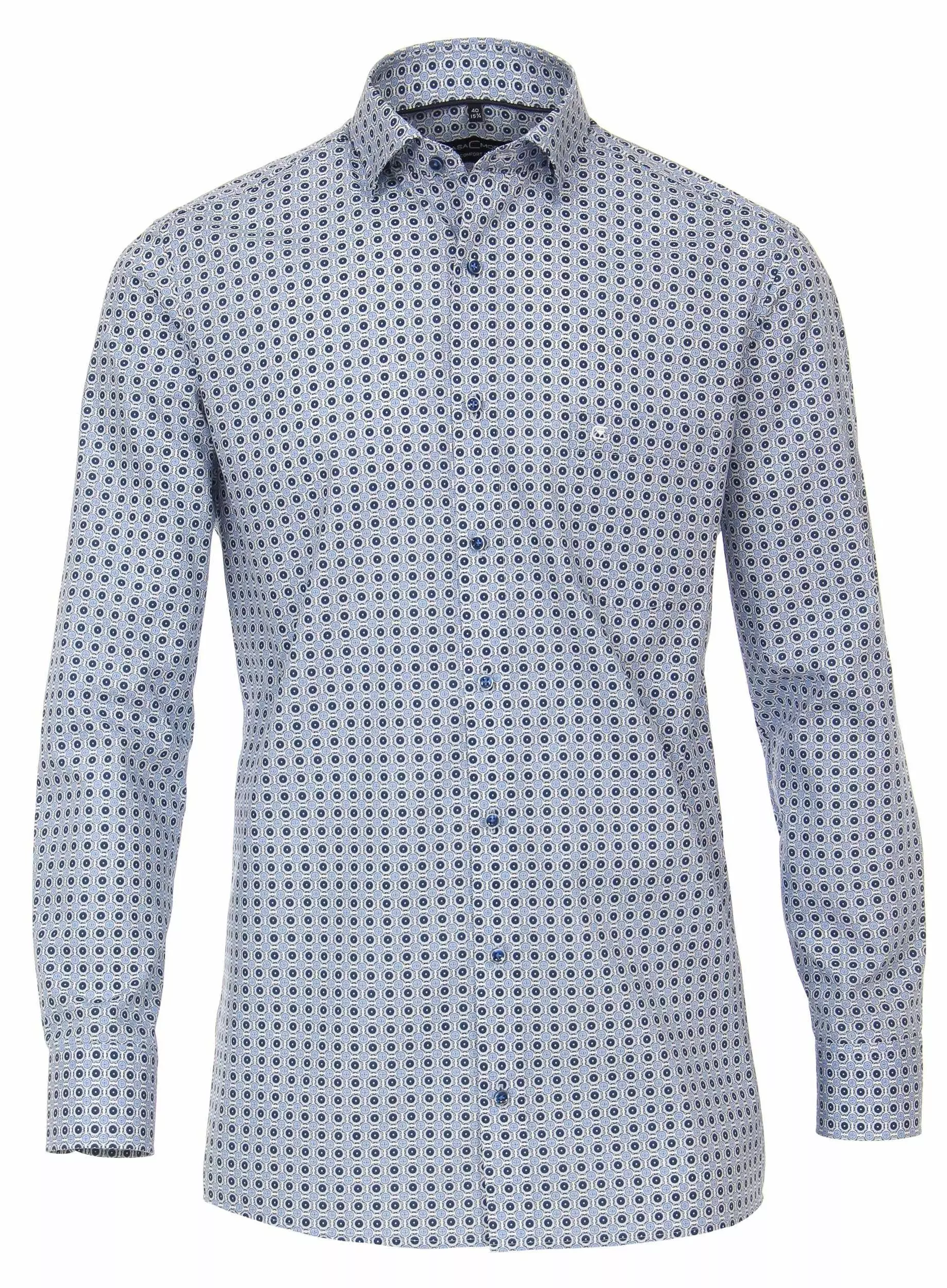 Casa Moda overhemd lange mouw met borstzakje in een blauw en wit fantasie design.