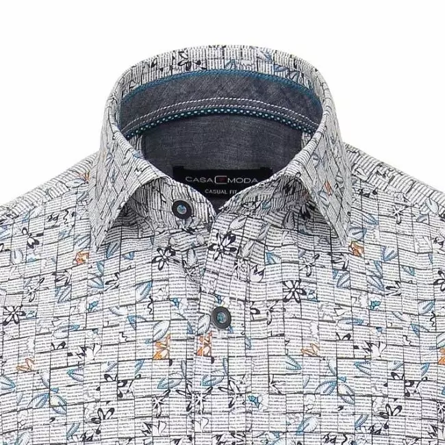 Casa Moda overhemd lange mouw in een blauw en camel fantasie motief. Binnenkant kraag en manchetten met een contrasterend stofje afgewerkt. Op de linker kant van de borst een borstzakje. Model casual fit in 100% katoen.