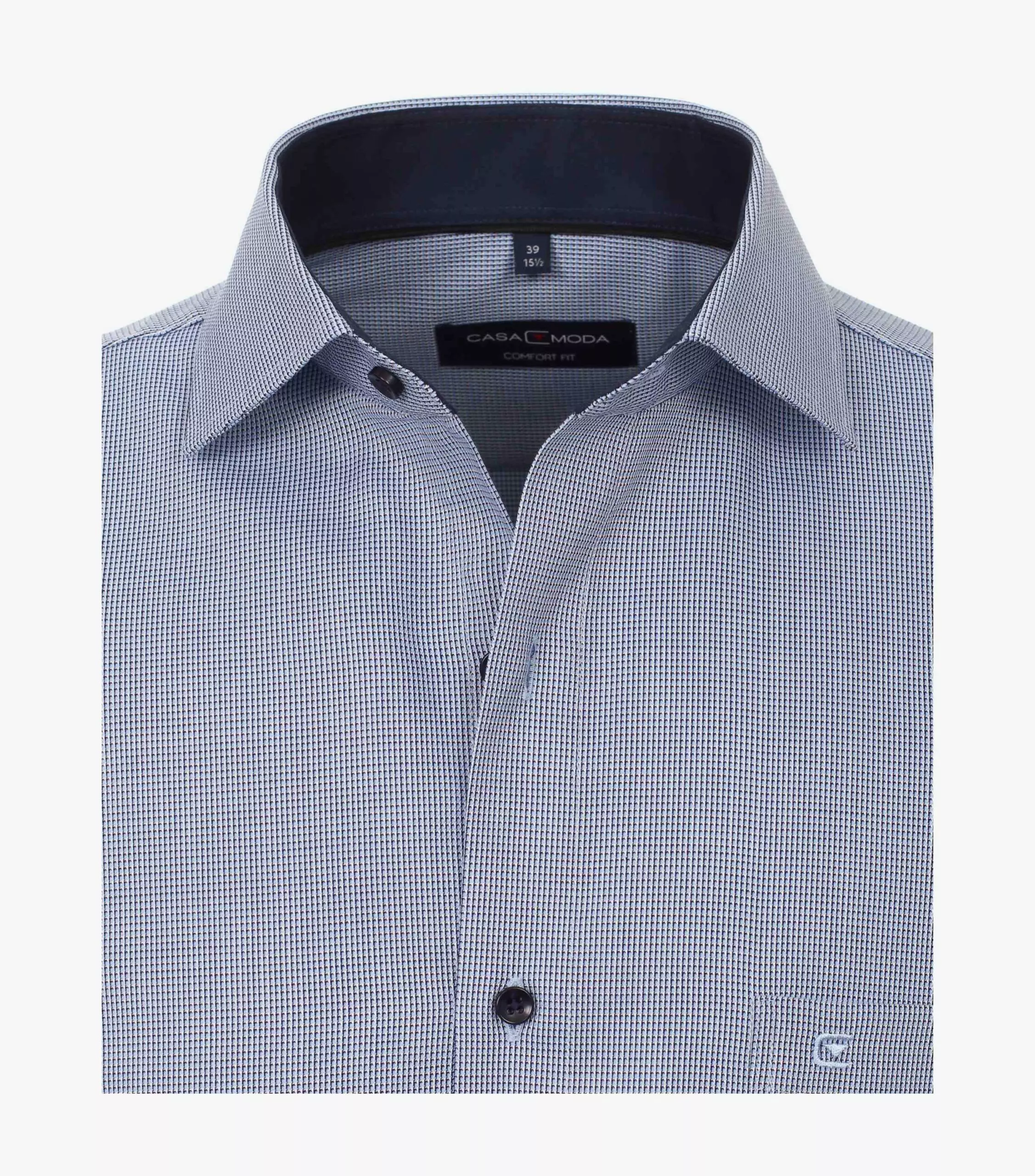 Casa Moda lange mouw overhemd blauw werkje met een contrasterend stofje aan de binnenkant van de kraag en manchetten. Overhemd met lange mouwen en borstzakje in 100% katoen strijkvrij. Model comfort fit.