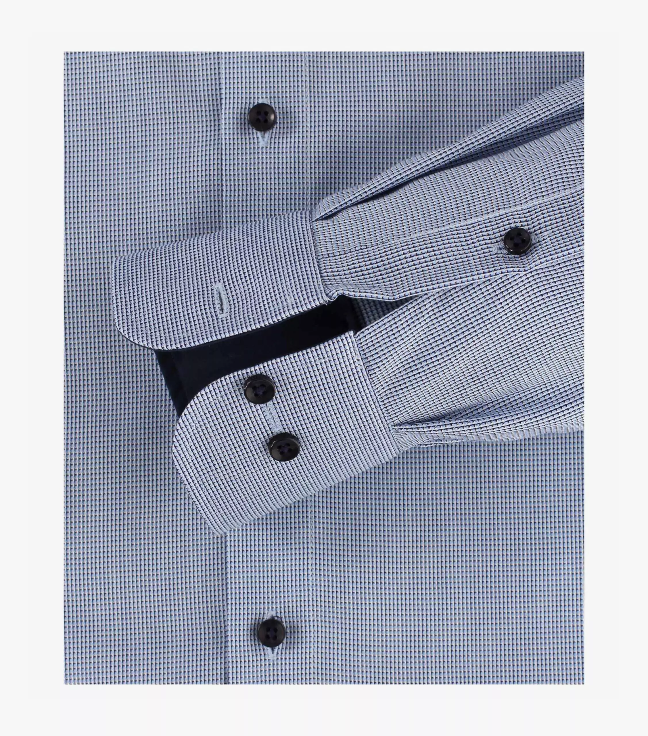 Casa Moda lange mouw overhemd blauw werkje met een contrasterend stofje aan de binnenkant van de kraag en manchetten. Overhemd met lange mouwen en borstzakje in 100% katoen strijkvrij. Model comfort fit.
