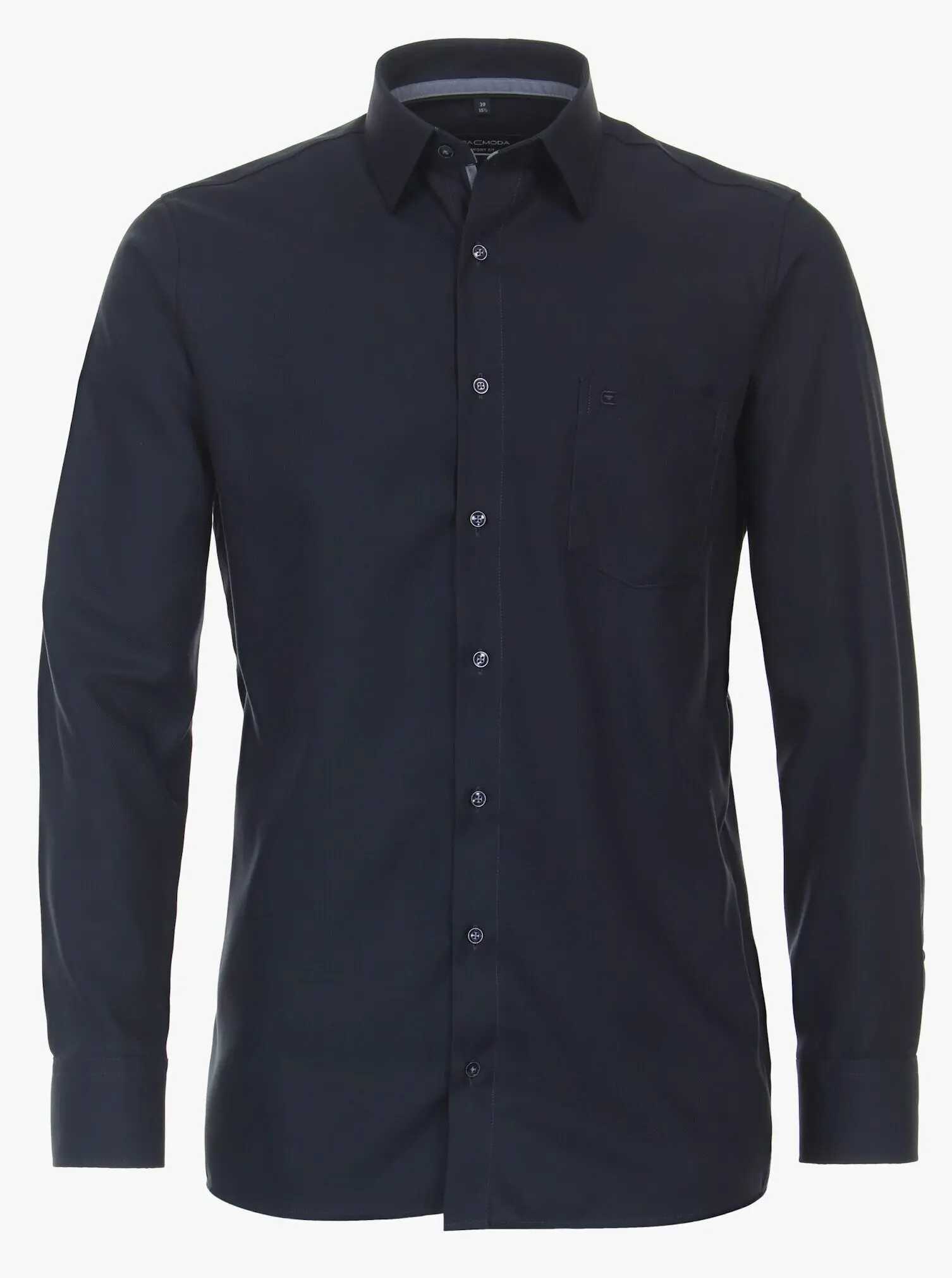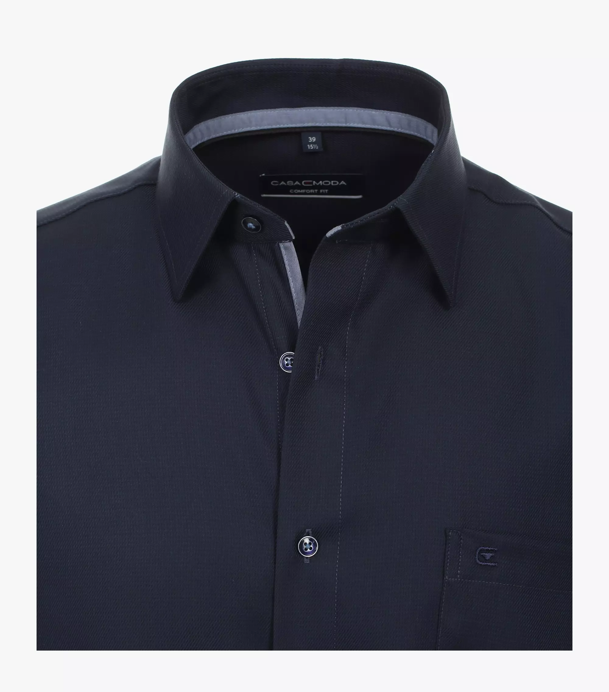 Het Casa Moda overhemd met lange mouw in donkerblauw ingeweven design is uiterst veelzijdig en kan gedragen worden voor verschillende gelegenheden. Combineer het overhemd met een nette pantalon en een stropdas voor een formele look, of draag het met een jeans voor een meer casual, maar toch verzorgde outfit. Dankzij de donkere kleur en het subtiele patroon is het overhemd gemakkelijk te combineren met verschillende kleuren en stijlen, waardoor het een veelzijdige aanwinst is voor elke garderobe.Conclusie