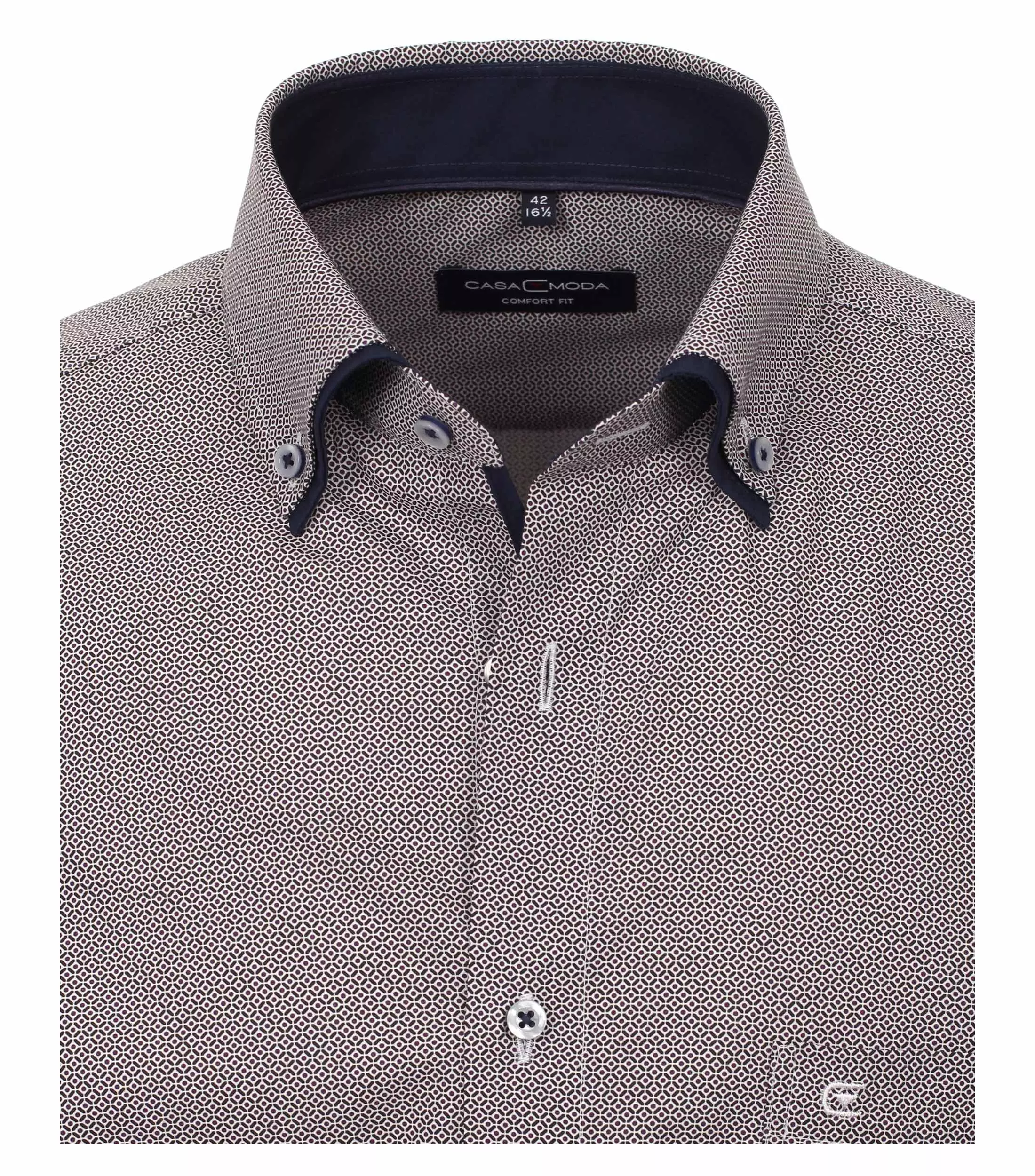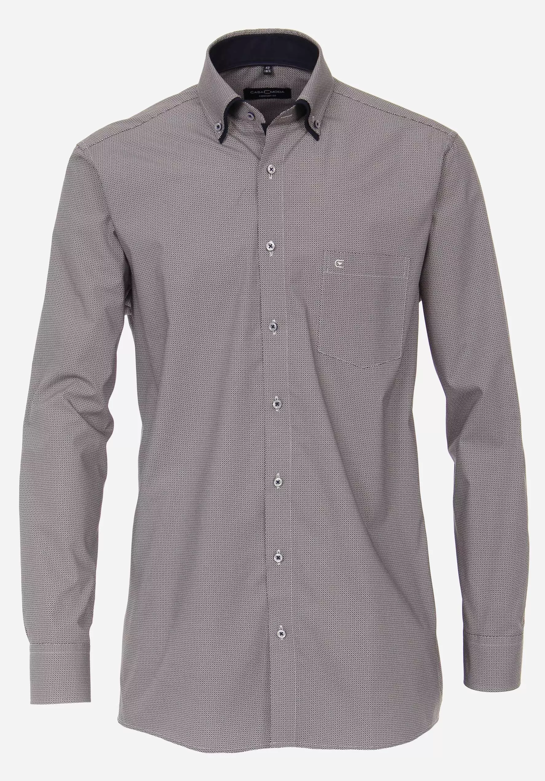 Casa Moda overhemd lange mouw met dubbele kraag button down en borstzakje in donkerblauw met paars stipjes design. De kwaliteit is 100% katoen easy care in model comfort fit.