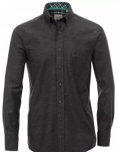 Casa Moda overhemd lange mouw met borstzakje in donkergrijs flanel. Overhemd in 100% katoen flanel zware kwaliteit.