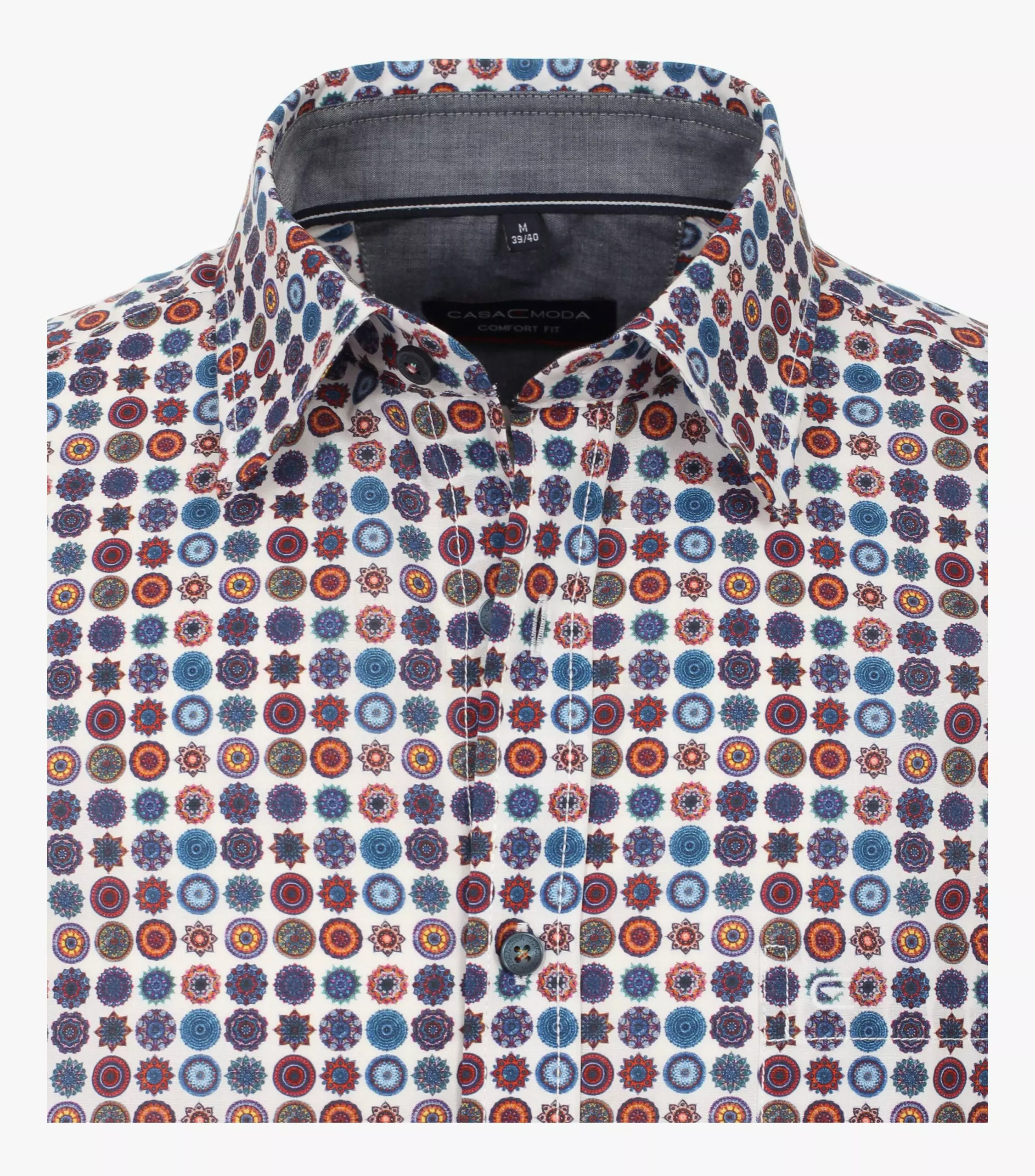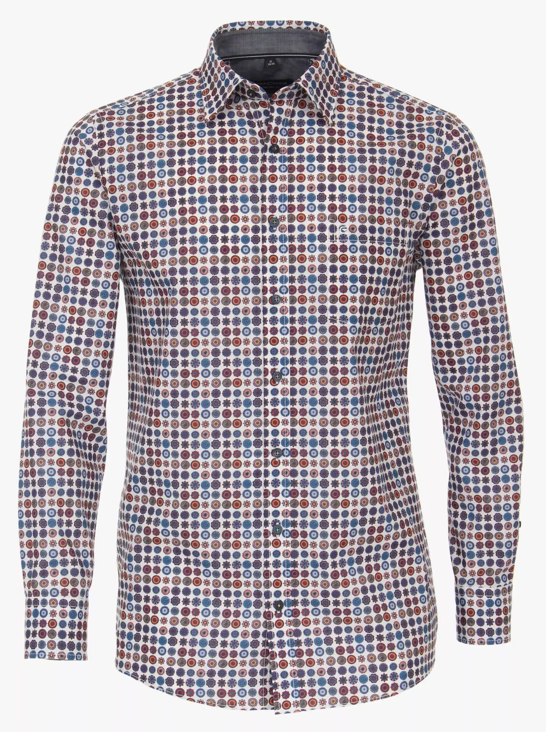 Casa Moda overhemd lange mouw met borstzakje in een kleurrijk cirkel patroon. Model comfort fit 100%katoen.
