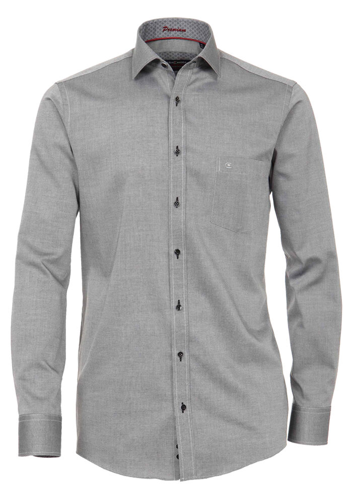 Casa Moda lange mouw overhemd grijs gemêleerd met borstzakje. Binnenkant kraag en manchetten zijn met een contrasterend stofje afgewerkt. De kwaliteit is 100%katoen easy care.