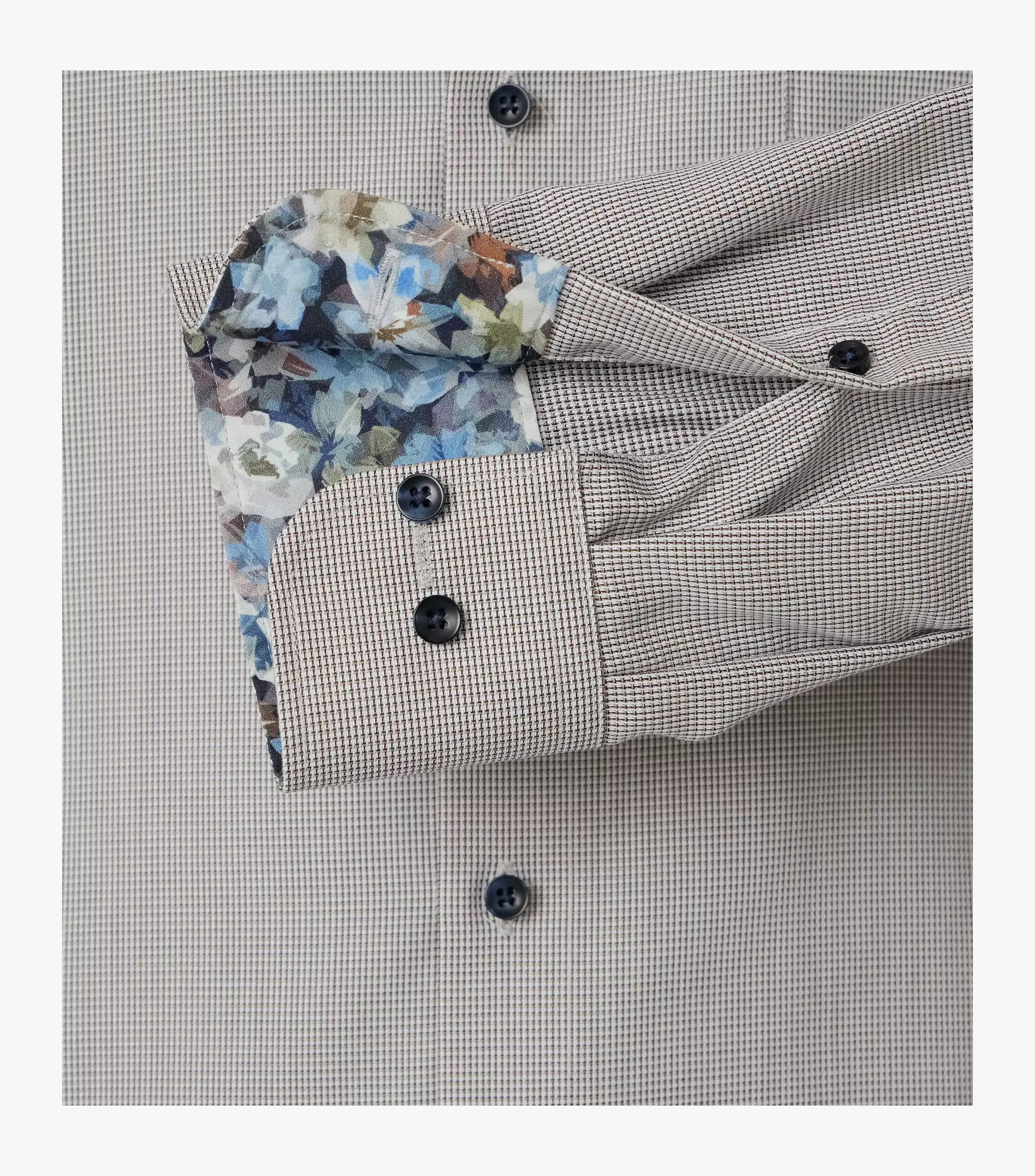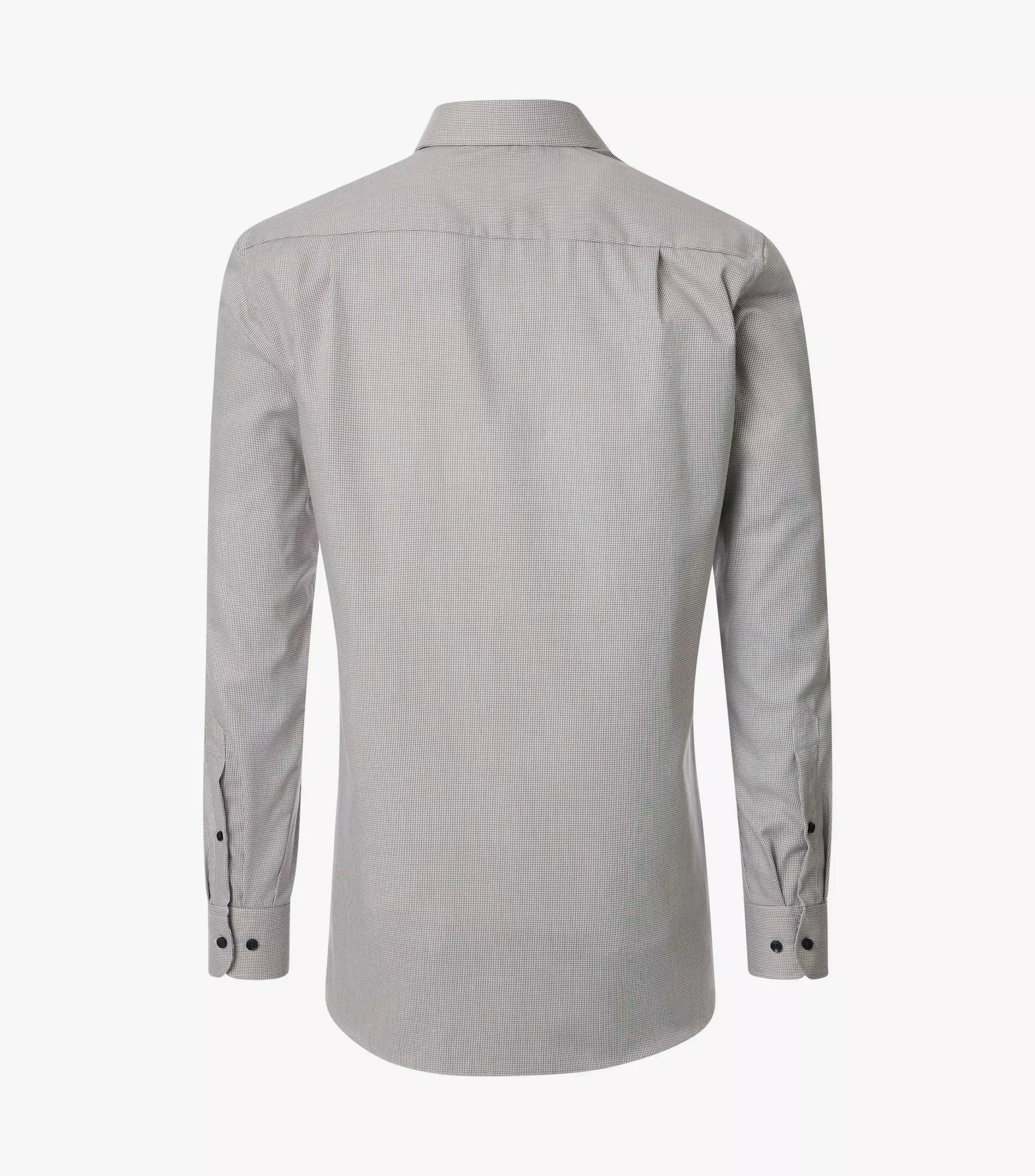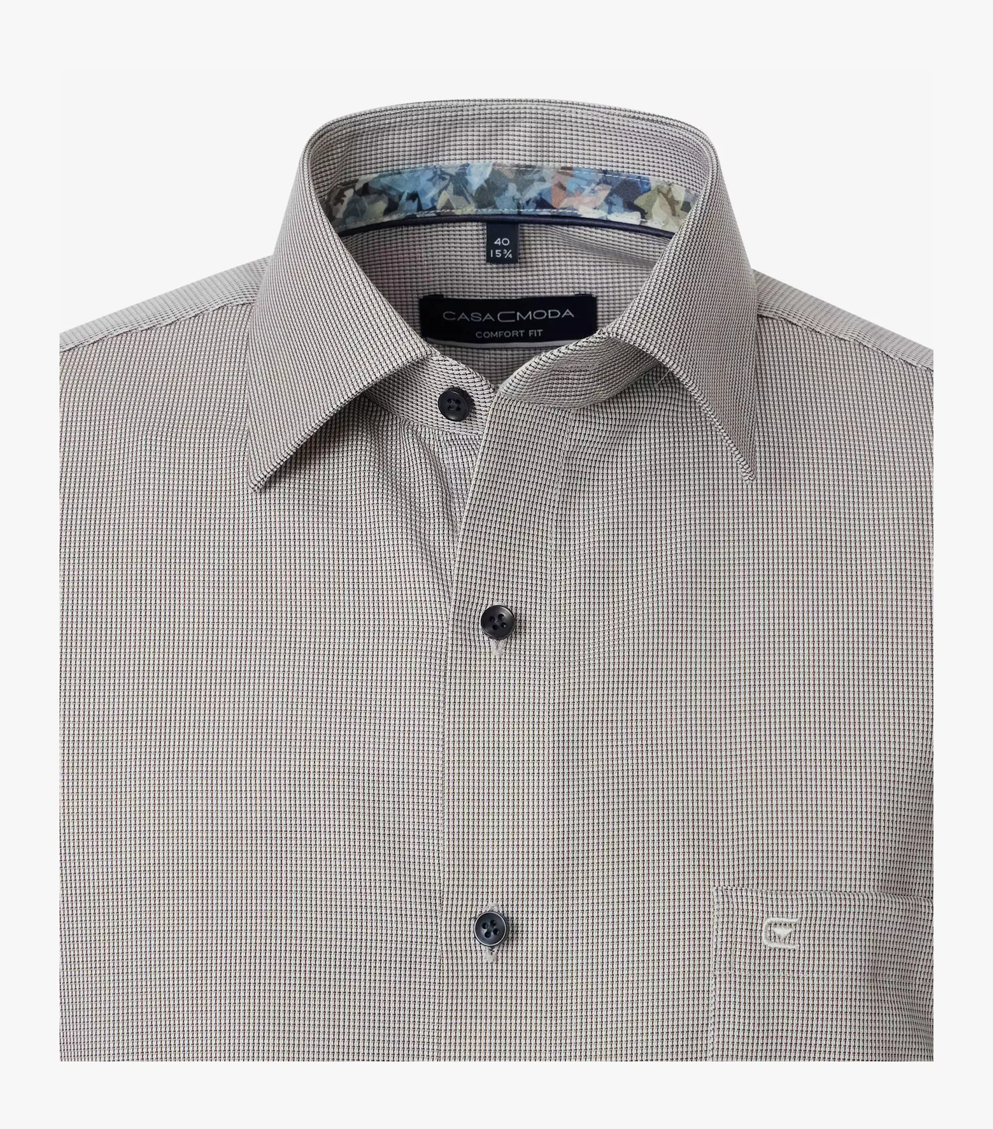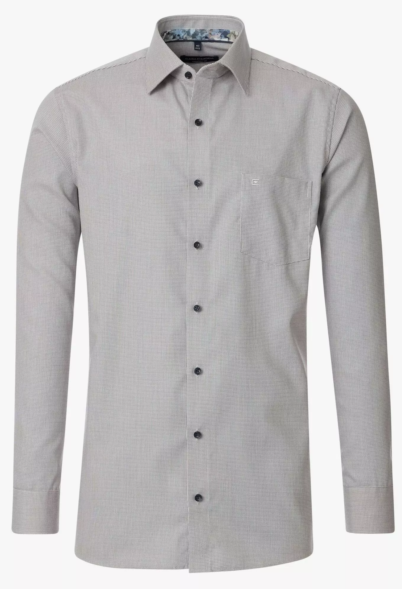 Casa Moda overhemd lange mouw met borstzakje in grijs met ingeweven design. Binnenkant kraag en manchetten zijn met een contrasterend stofje afgewerkt. Model comfort fit in 100% katoen easy care.