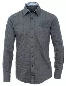 Casa Moda overhemd lange mouw grijs met ingeweven lengte streepje. Overhemd met lange mouwen en borstzakje met boven het borstzakje een geborduurde tekst.