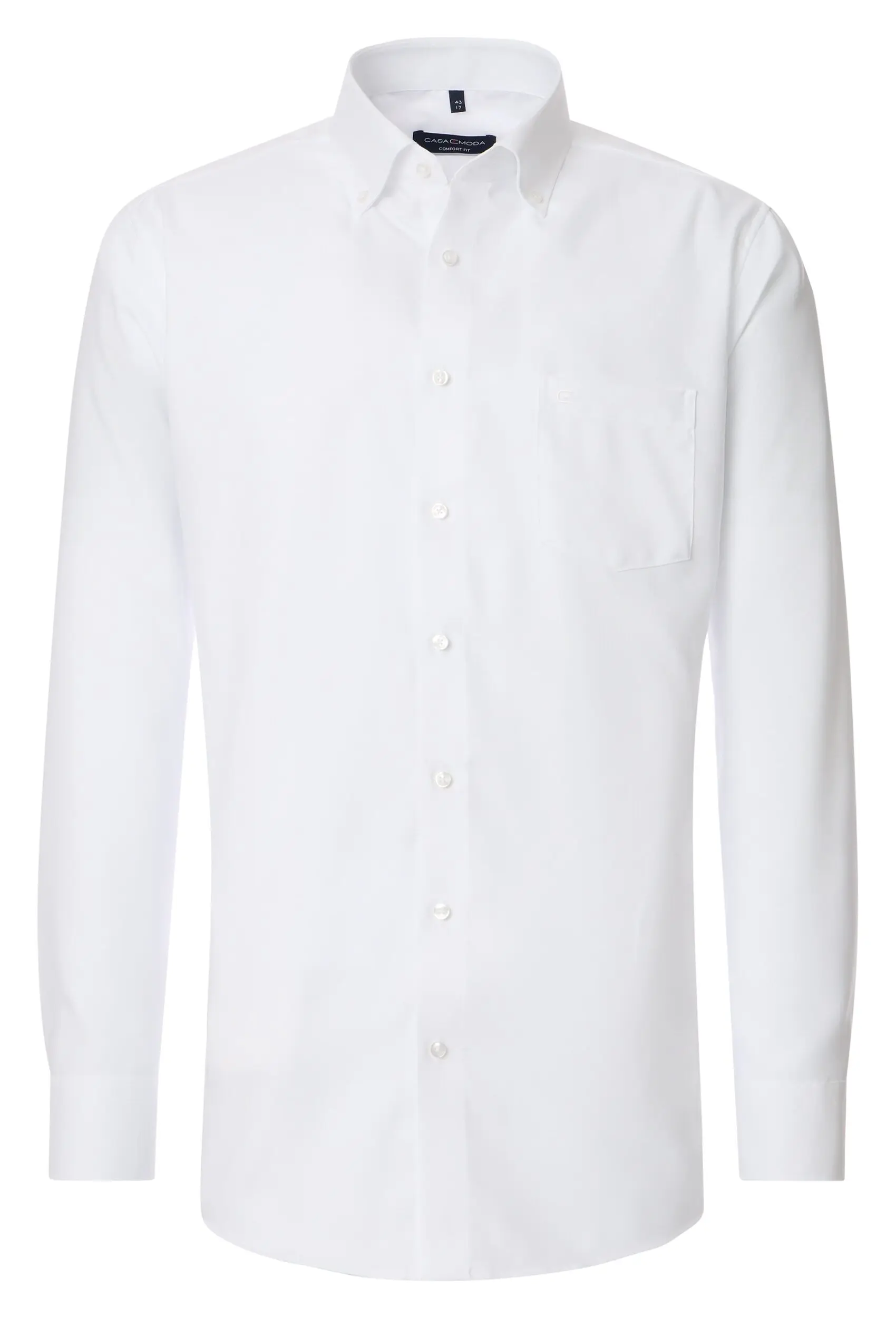 Casa Moda overhemd lange mouw met borstzakje in uni wit met kraag button down. Model comfort fit in 100% katoen strijkvrij.