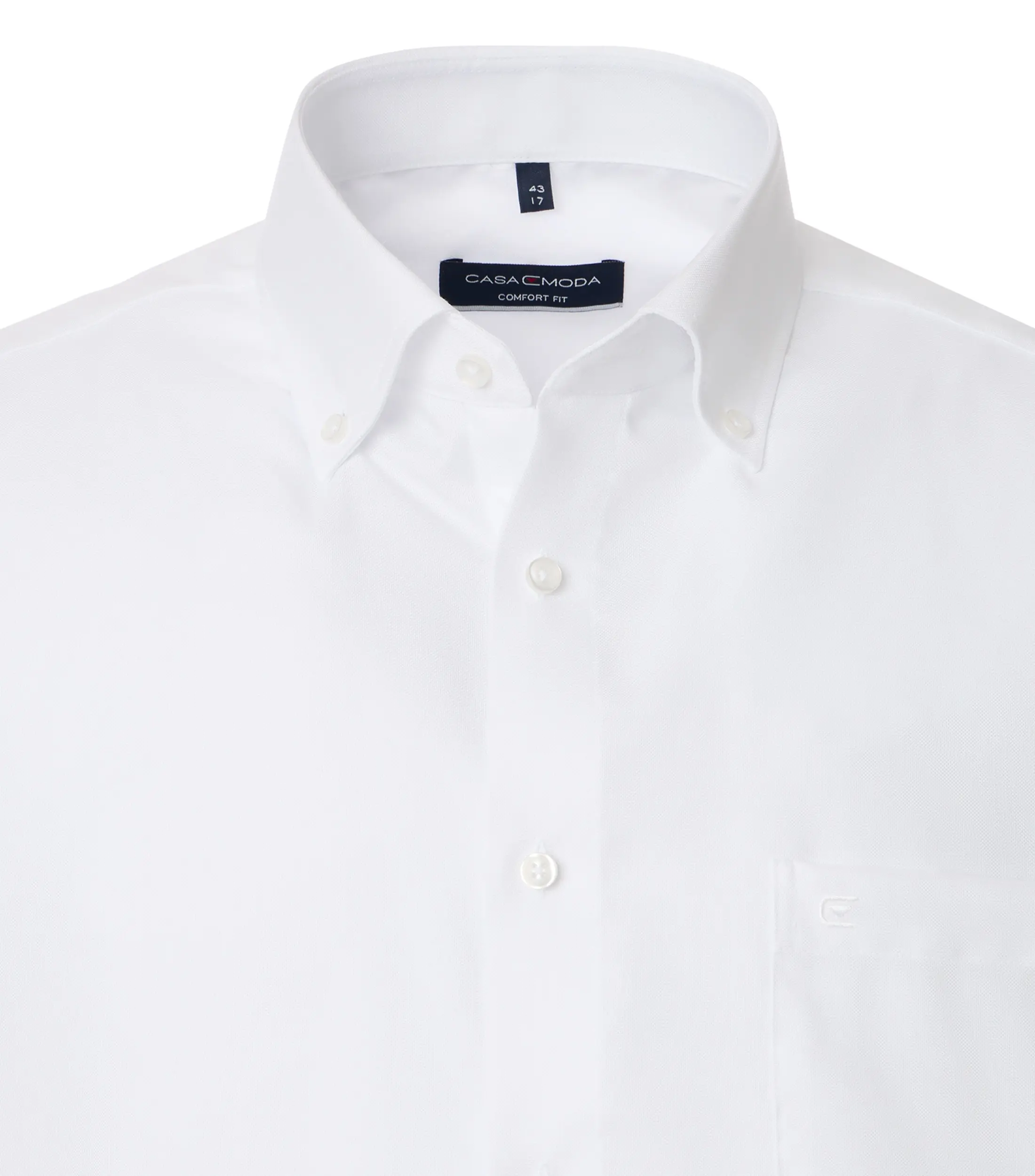 Casa Moda overhemd grote maat lange mouw uni wit button down. Model comfort fit 100% katoen strijkvrij.