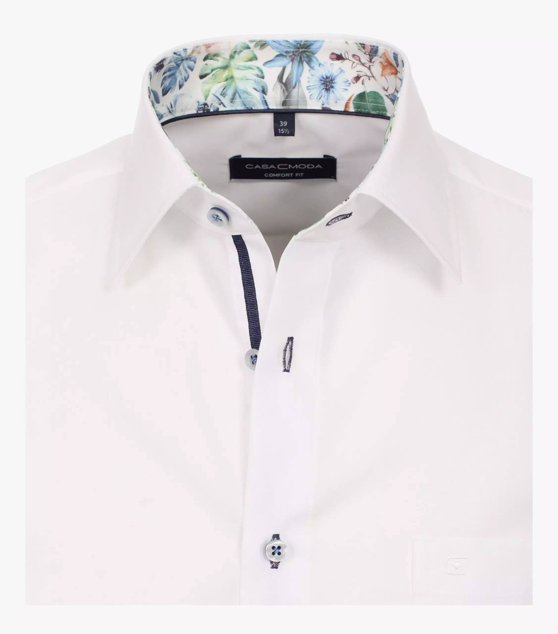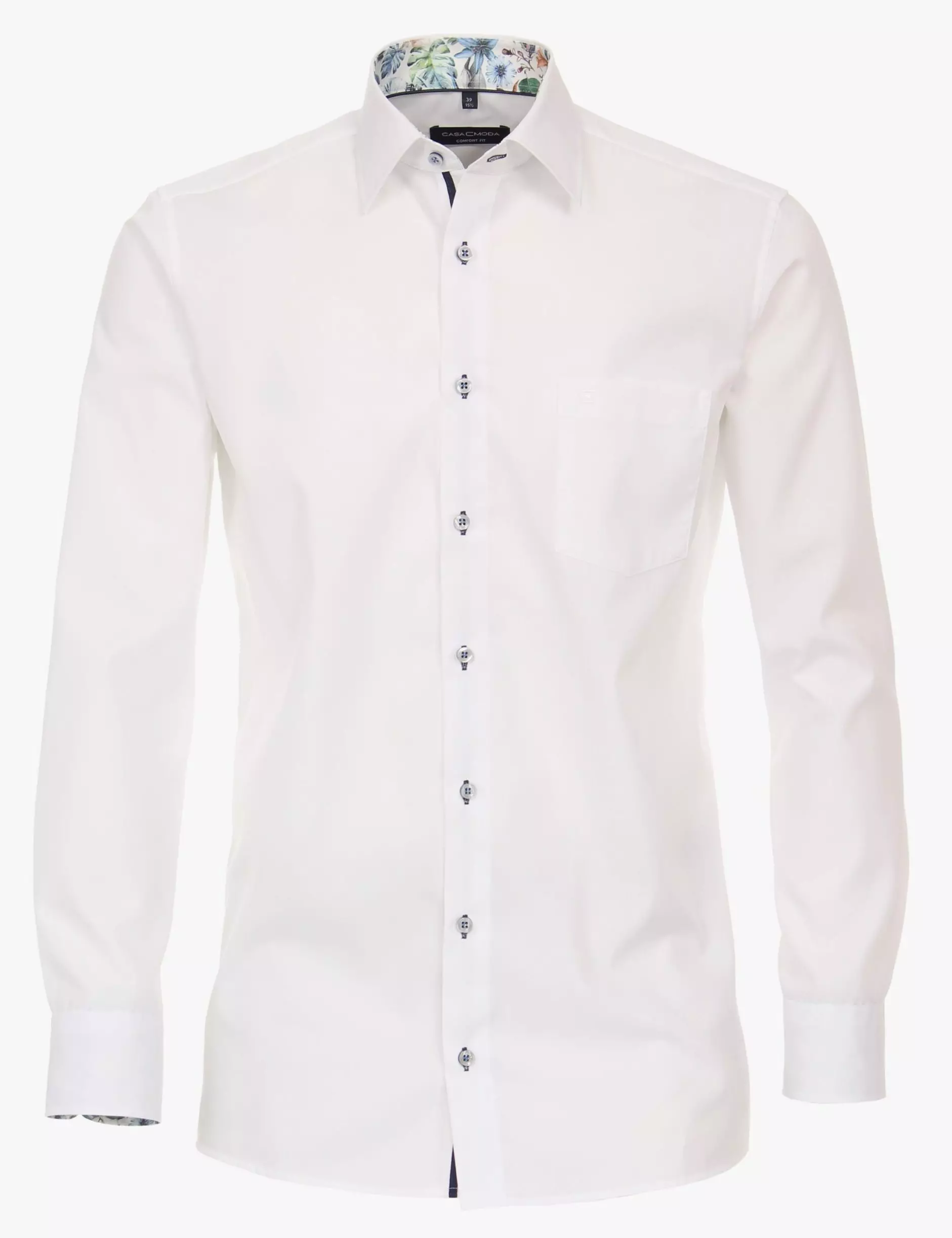 Casa Moda overhemd lange mouw met borstzakje in wit met contrast in de kraag. Model comfort fit 100%katoen strijkvrij.