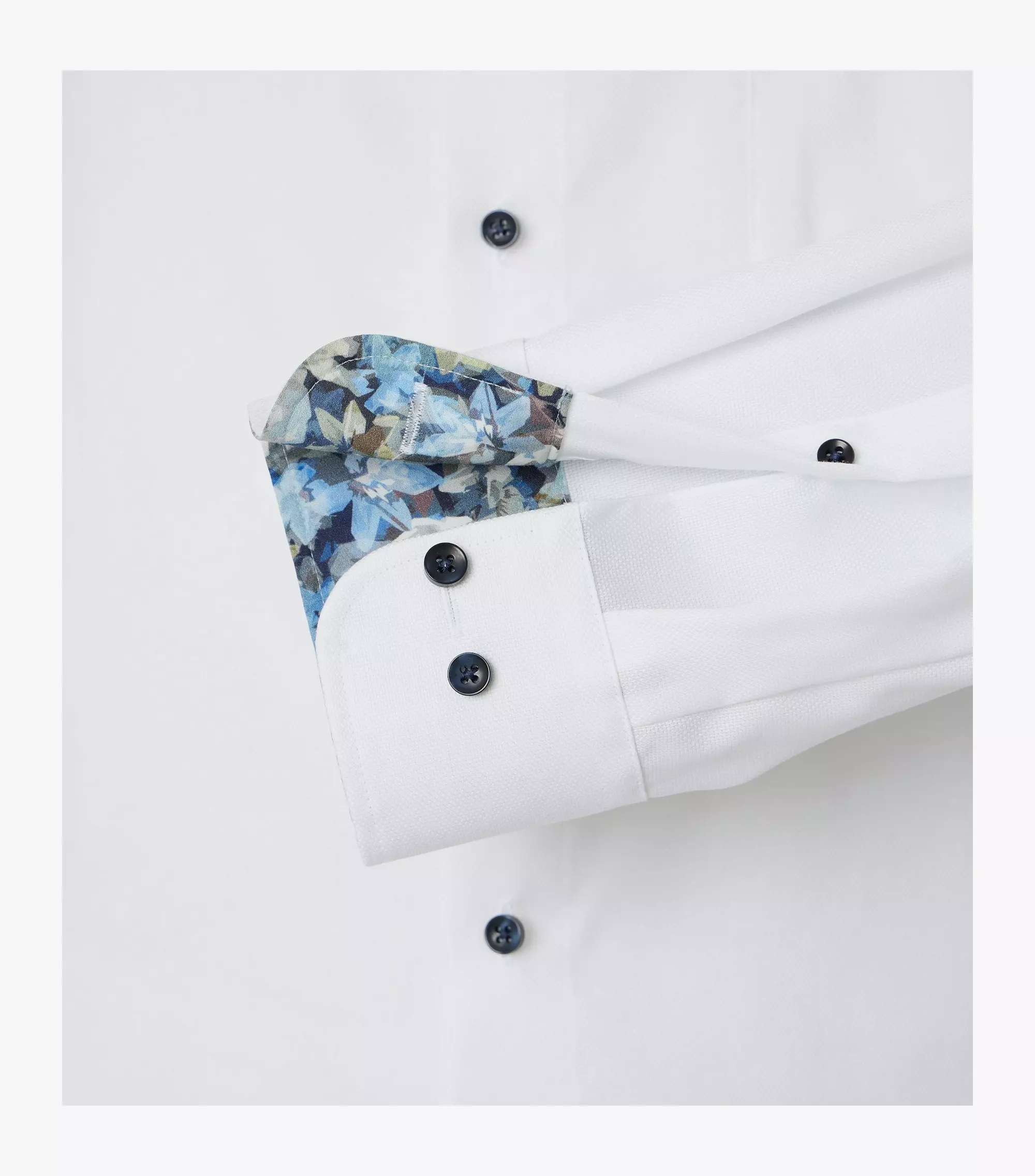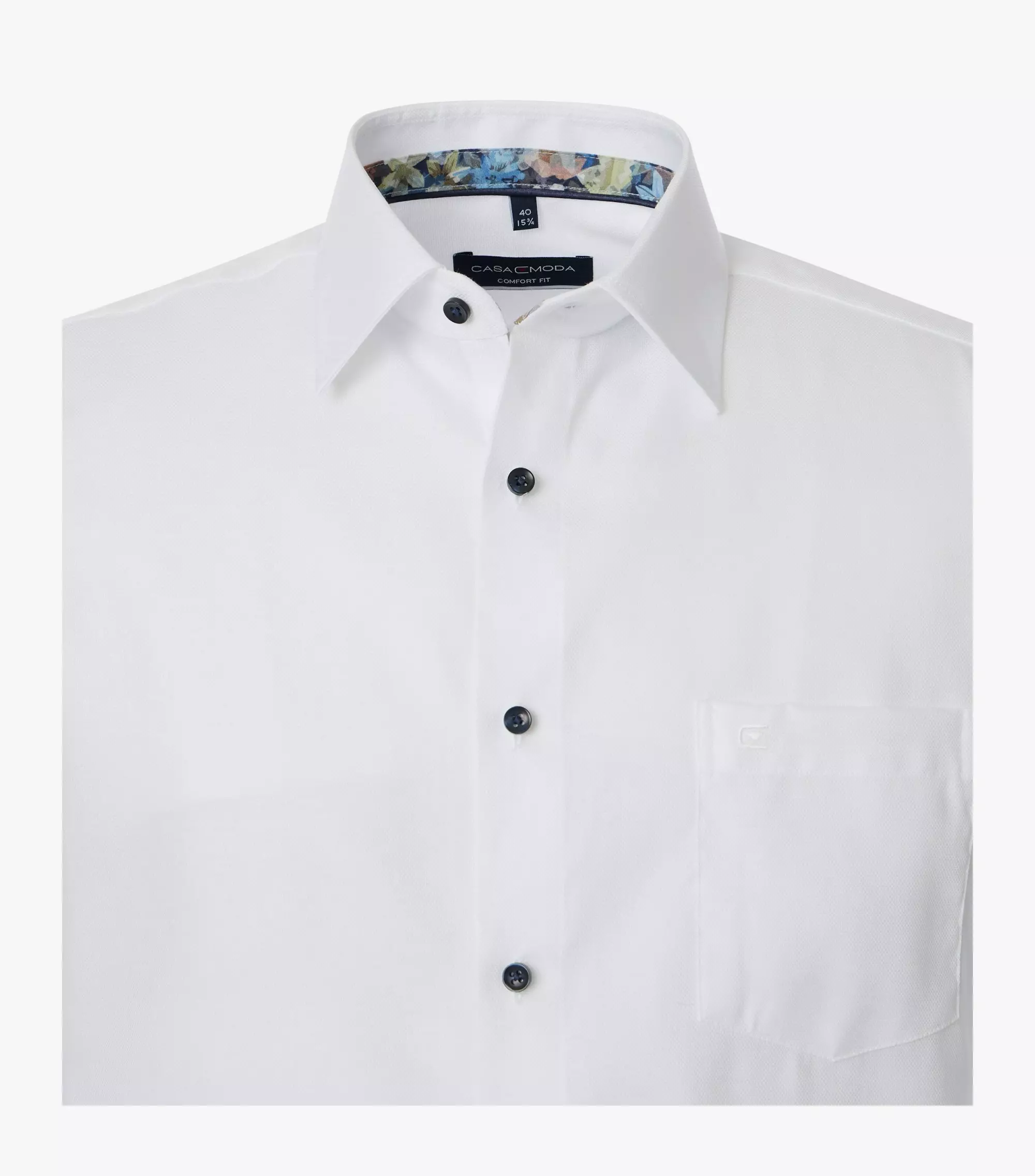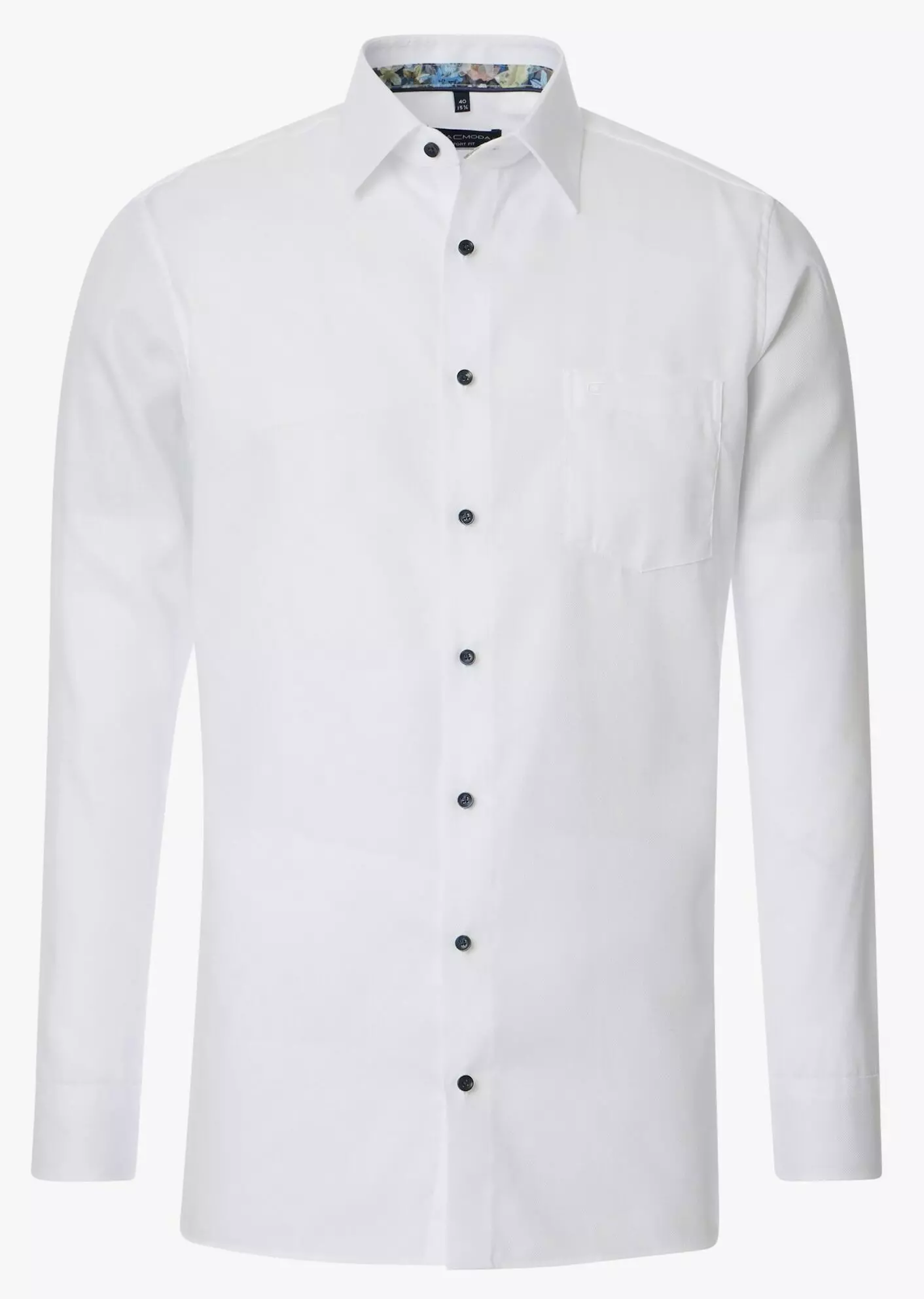 Casa Moda overhemd lange mouw met borstzakje in wit met ingeweven design. Binnenkant kraag en manchetten zijn met een contrasterend stofje afgewerkt. Model comfort fit in 100% katoen easy care.