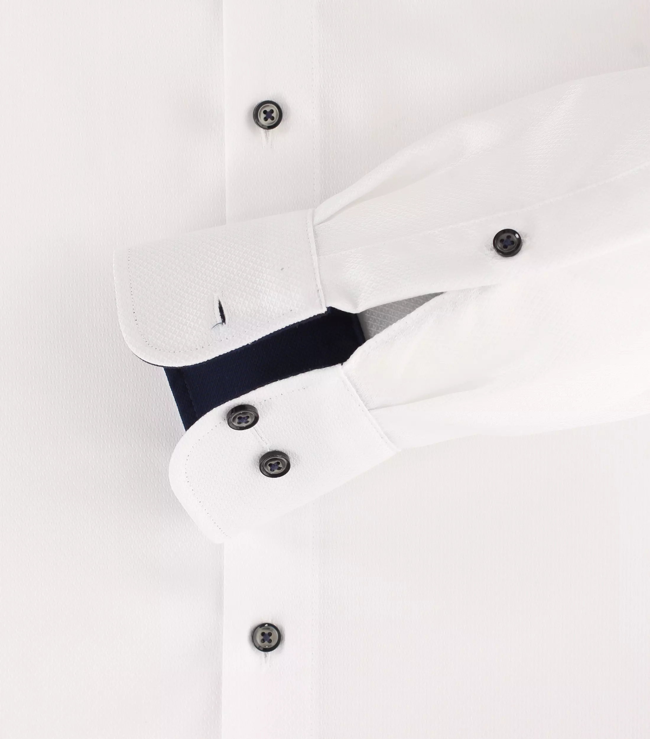 Casa Moda overhemd lange mouw met borstzakje in een wit fantasie werkje met boord button down.