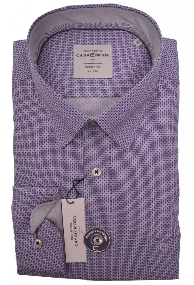 Casa Moda overhemd lange mouw met borstzak in een paars blokjes design. Model comfort fit 100%katoen strijkvrij.
