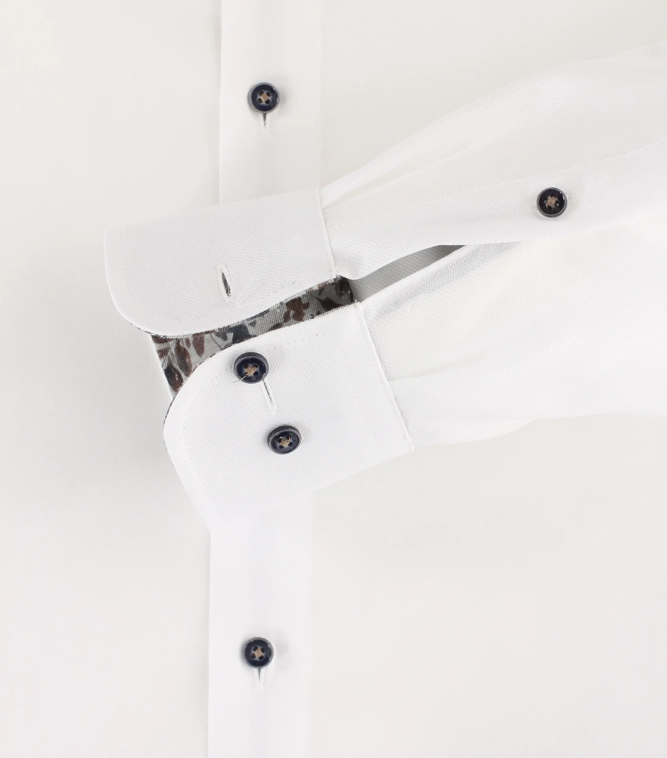 Casa Moda overhemd lange mouw met borstzakje wit met ingeweven structuurtje. Binnenkant kraag en manchetten zijn afgewerkt met een contrasterend stofje. Model comfort fit in 100% katoen strijkvrij.