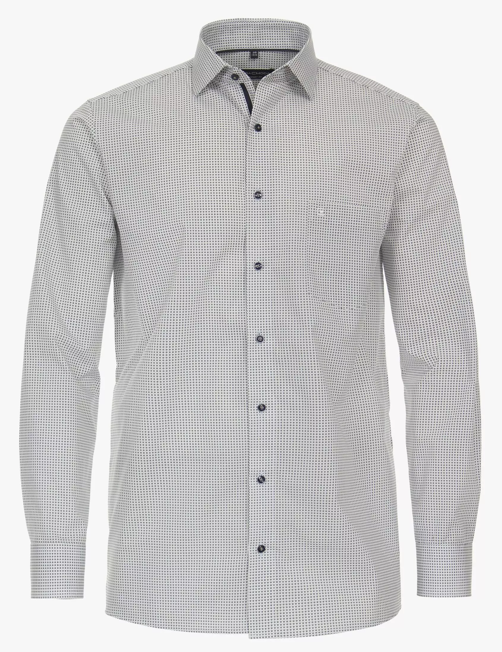 Casa Moda overhemd lange mouw met borstzakje in wit met een donkerblauw fantasie design. Model comfort fit in 100%katoen strijkvrij.