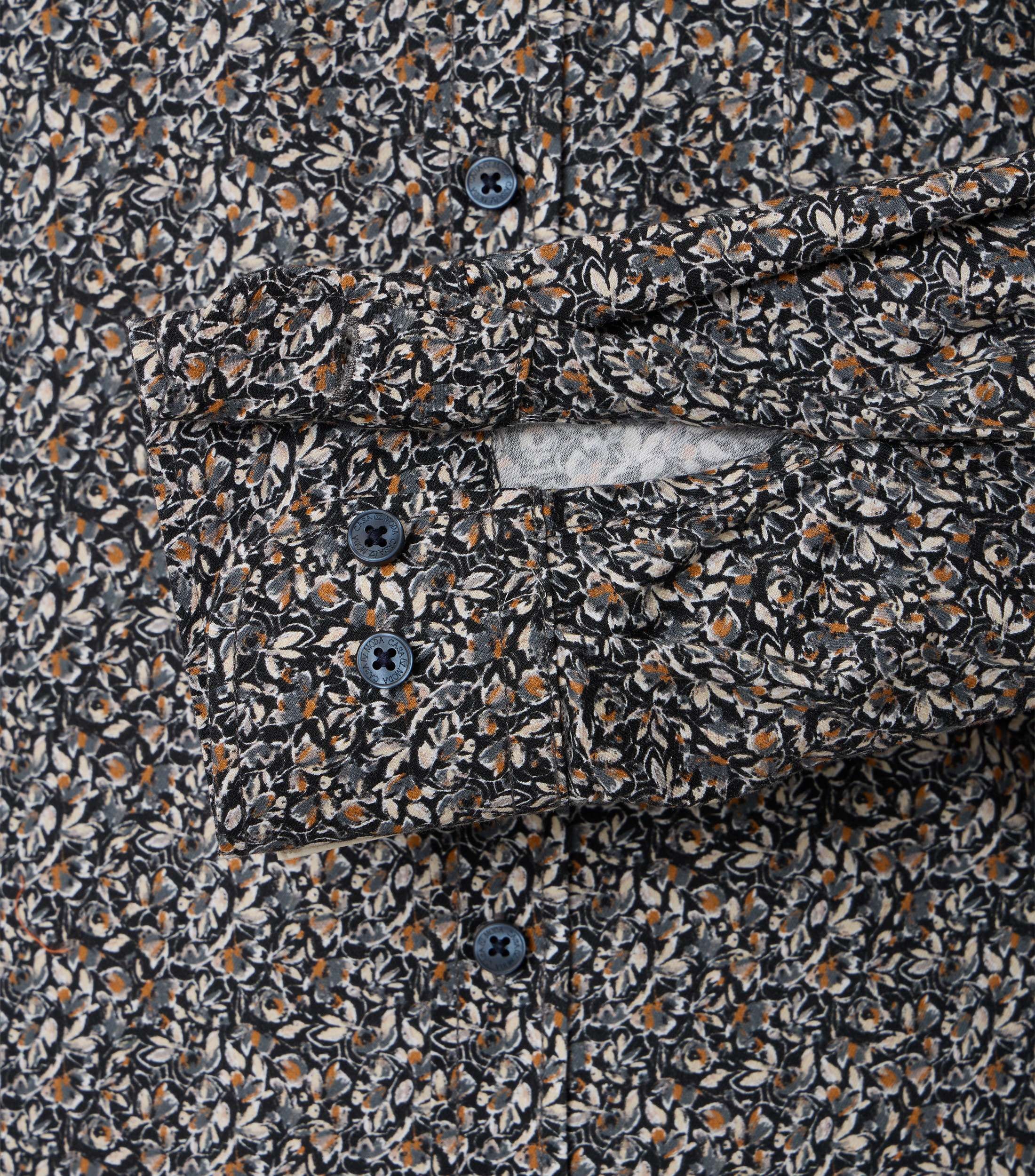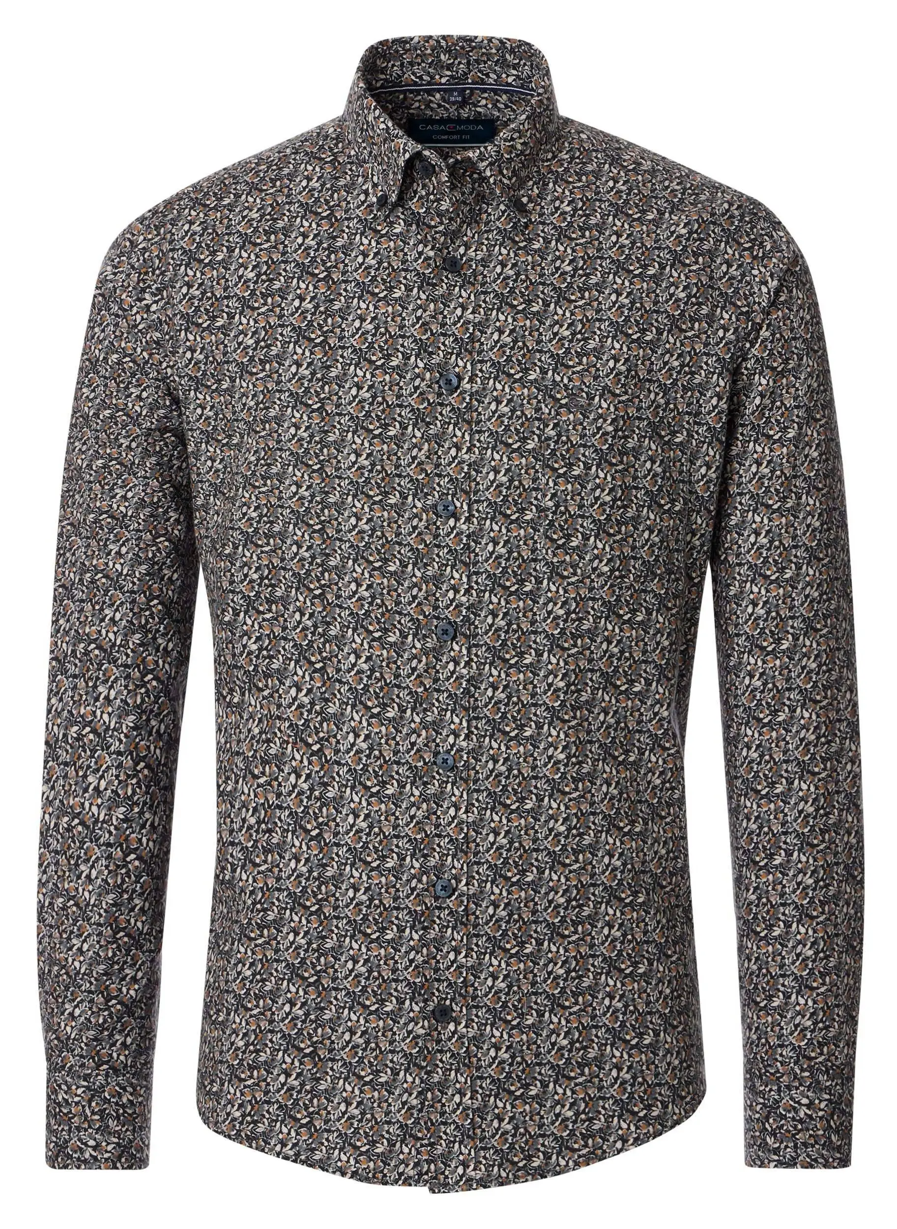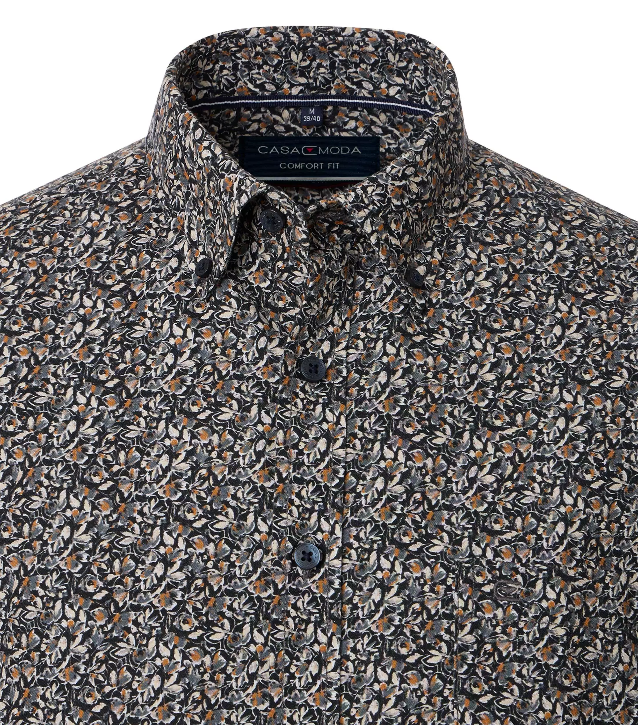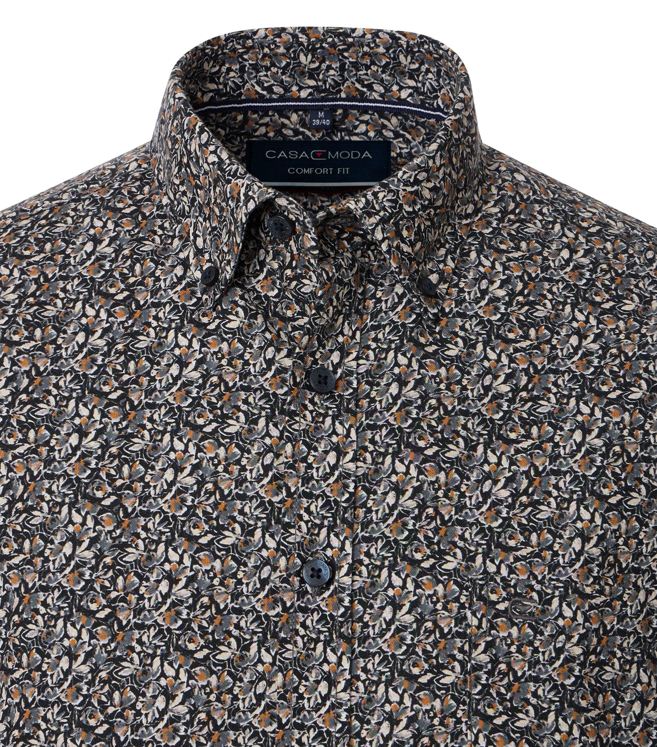 Casa Moda overhemd lange mouw met borstzakje en kraag button down in zwart fantasie design . Model comfort fit in 100%katoen easy care.
