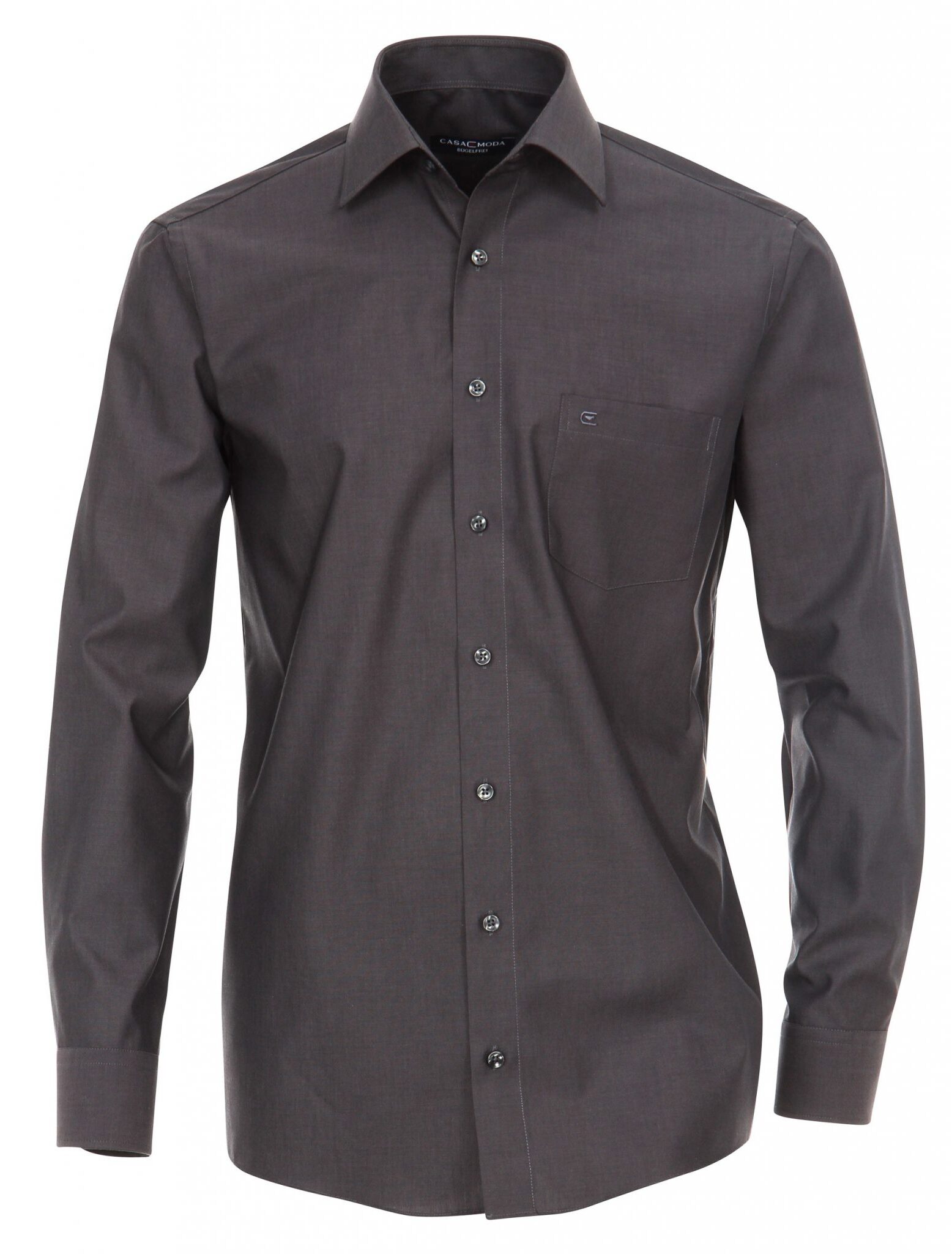 Casa Moda overhemd met lange mouwen en borstzakje in 100%katoen strijkvrij.Stijlvol en Comfortabel: Casa Moda Overhemd Lange Mouwen in Uni Donkergrijs