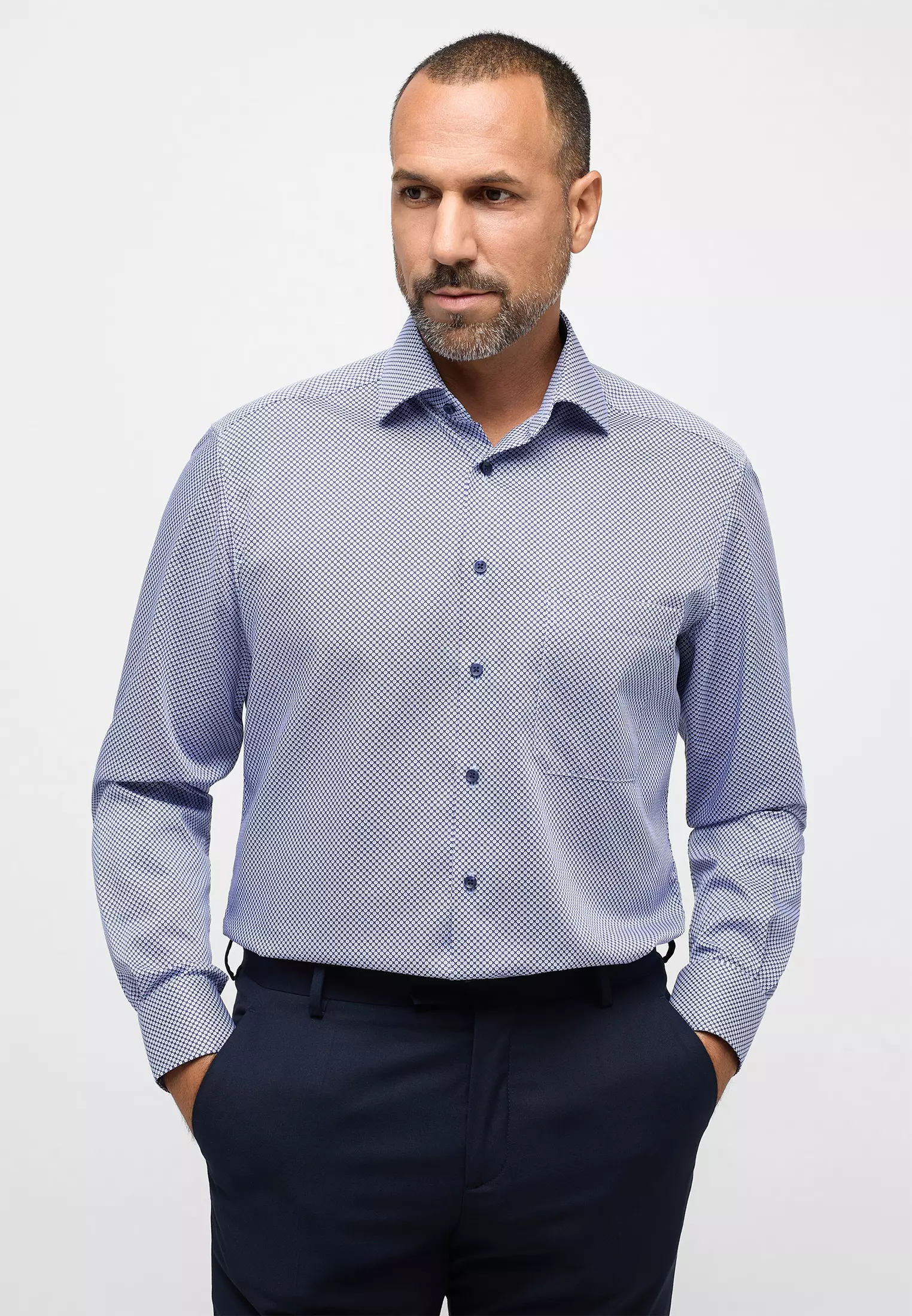 Ontdek het tijdloze design en het ultieme comfort van het Eterna overhemd met lange mouwen, voorzien van een subtiel ingeweven fantasie design in een verfijnde blauwe kleur. Dit overhemd biedt niet alleen een comfortabele pasvorm, maar is ook strijkvrij, waardoor het perfect is voor mannen die op zoek zijn naar stijl en gemak.