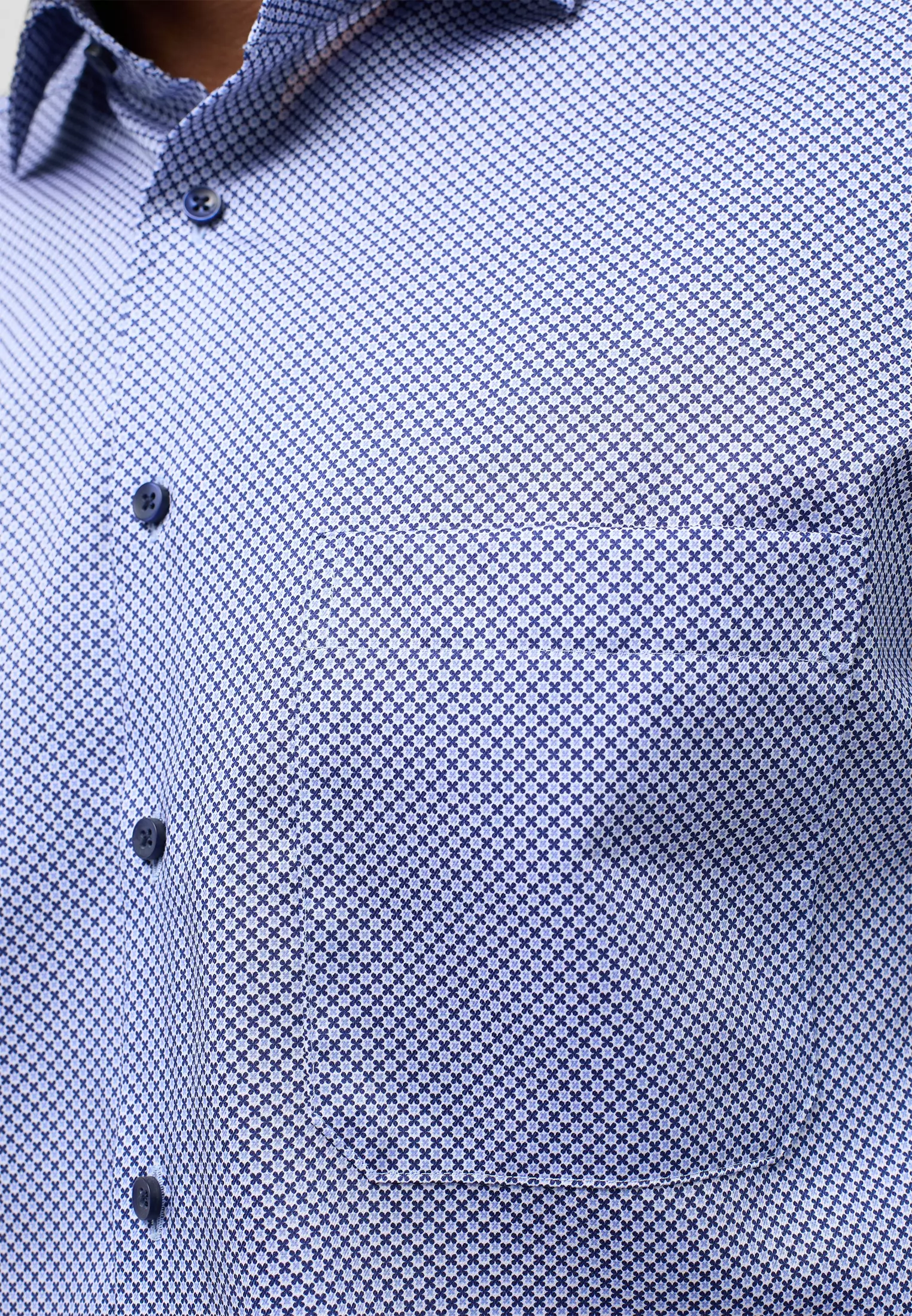 Eterna overhemd lange mouw met borstzakje in blauw ingeweven fantasie design strijkvrij. Eterna overhemd lange mouw in model comfort fit 100% katoen strijkvrij.