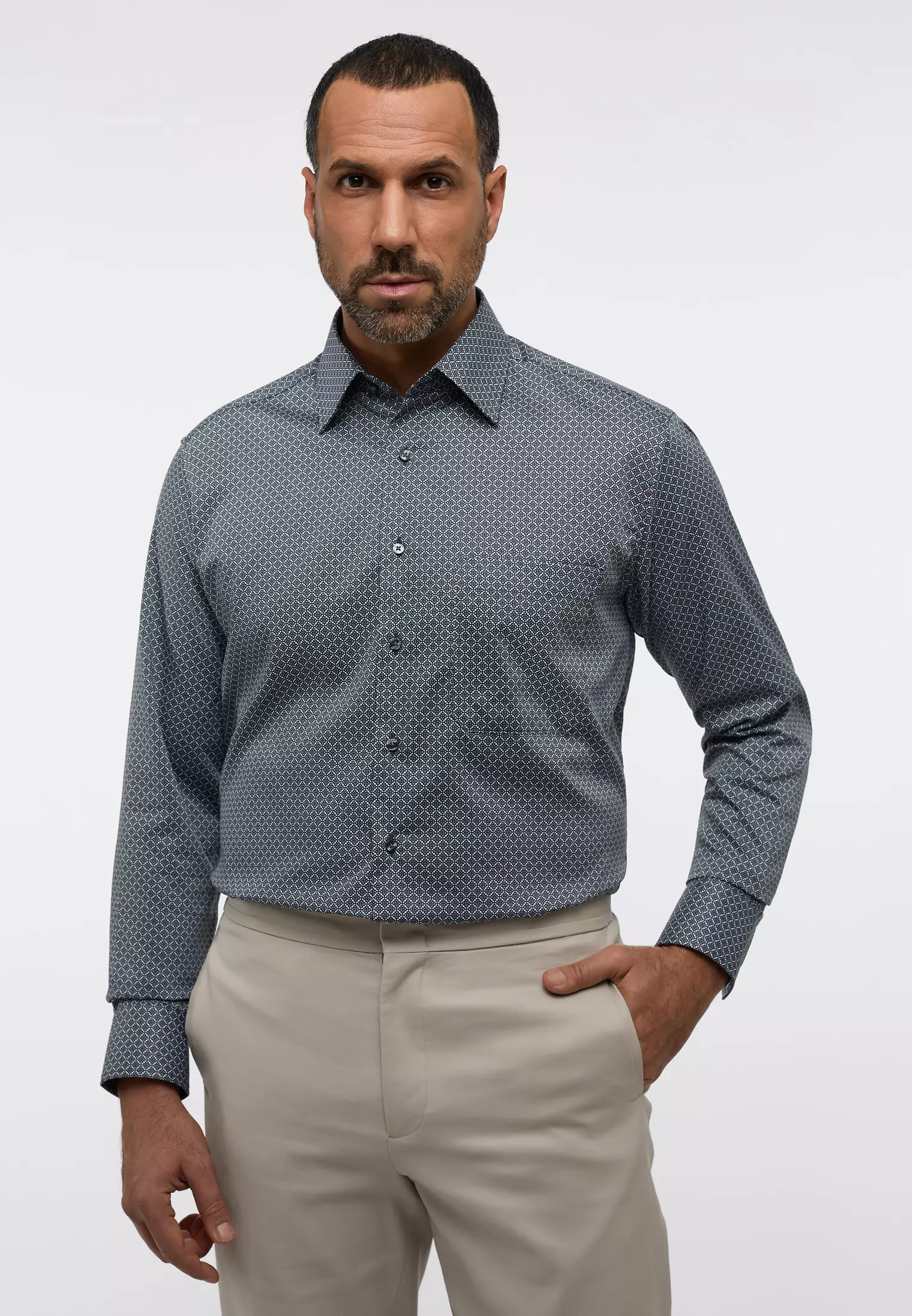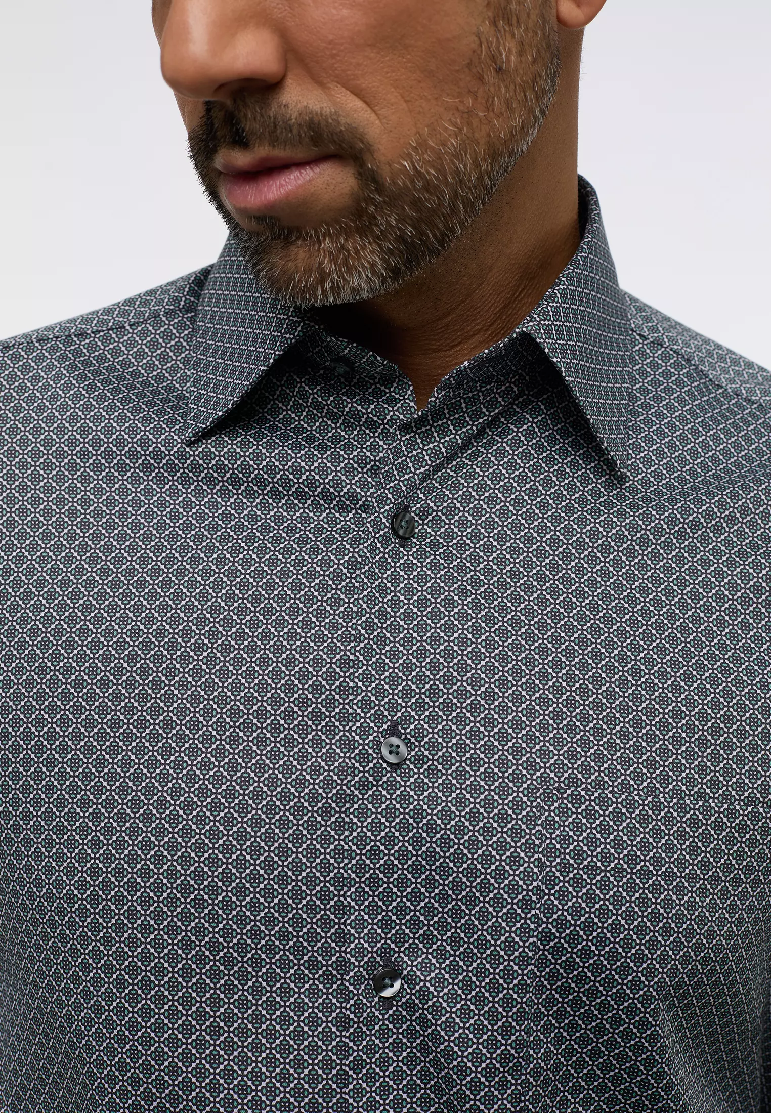Eterna overhemd lange mouw groen met wit fantasie design strijkvrij