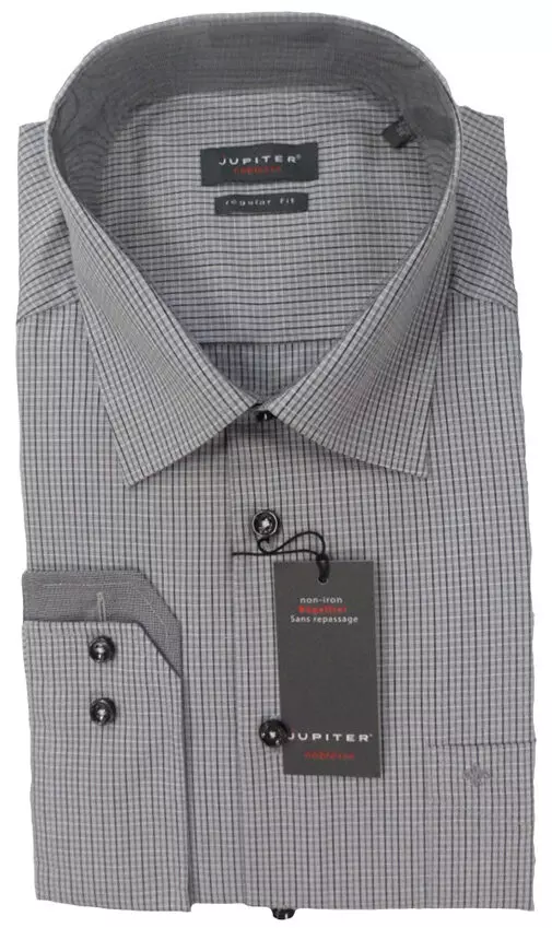 Jupiter grote maat overhemd lange mouw fijn zwart en grijs. Overhemd lange mouw met borstzak in 100% katoen strijkvrij.