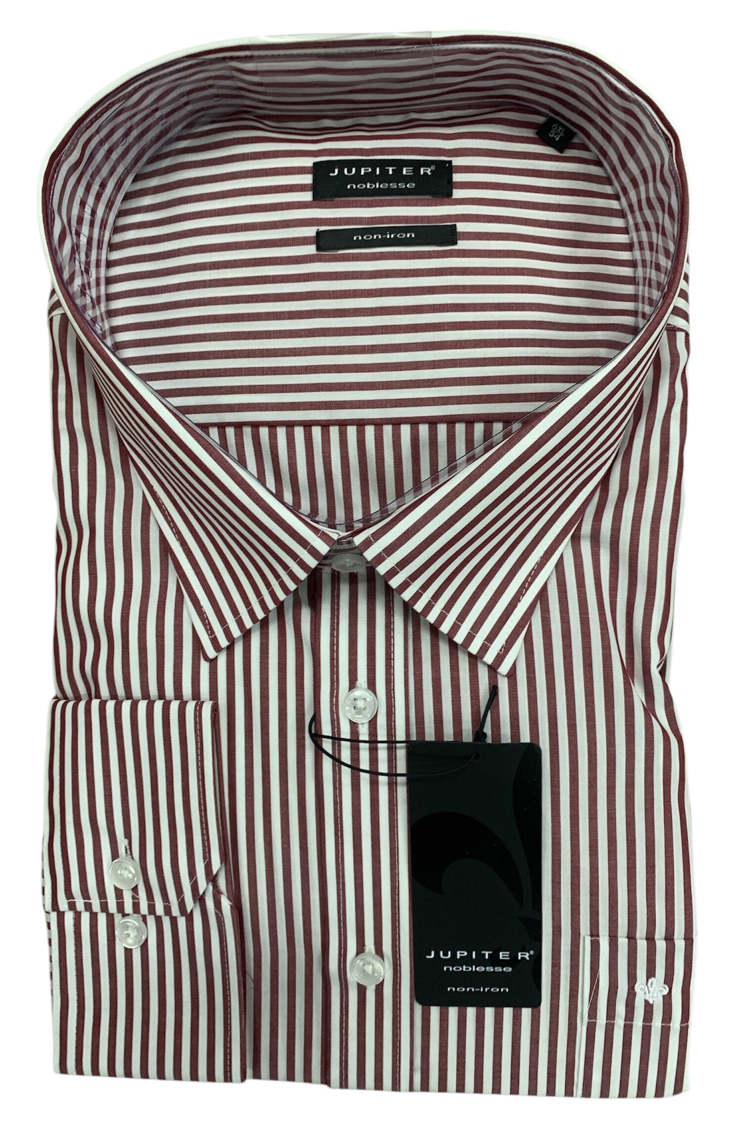 Jupiter overhemd lange mouw rood witte lengte streep. Jupiter overhemd met borstzakje in 100% katoen strijkvrij.