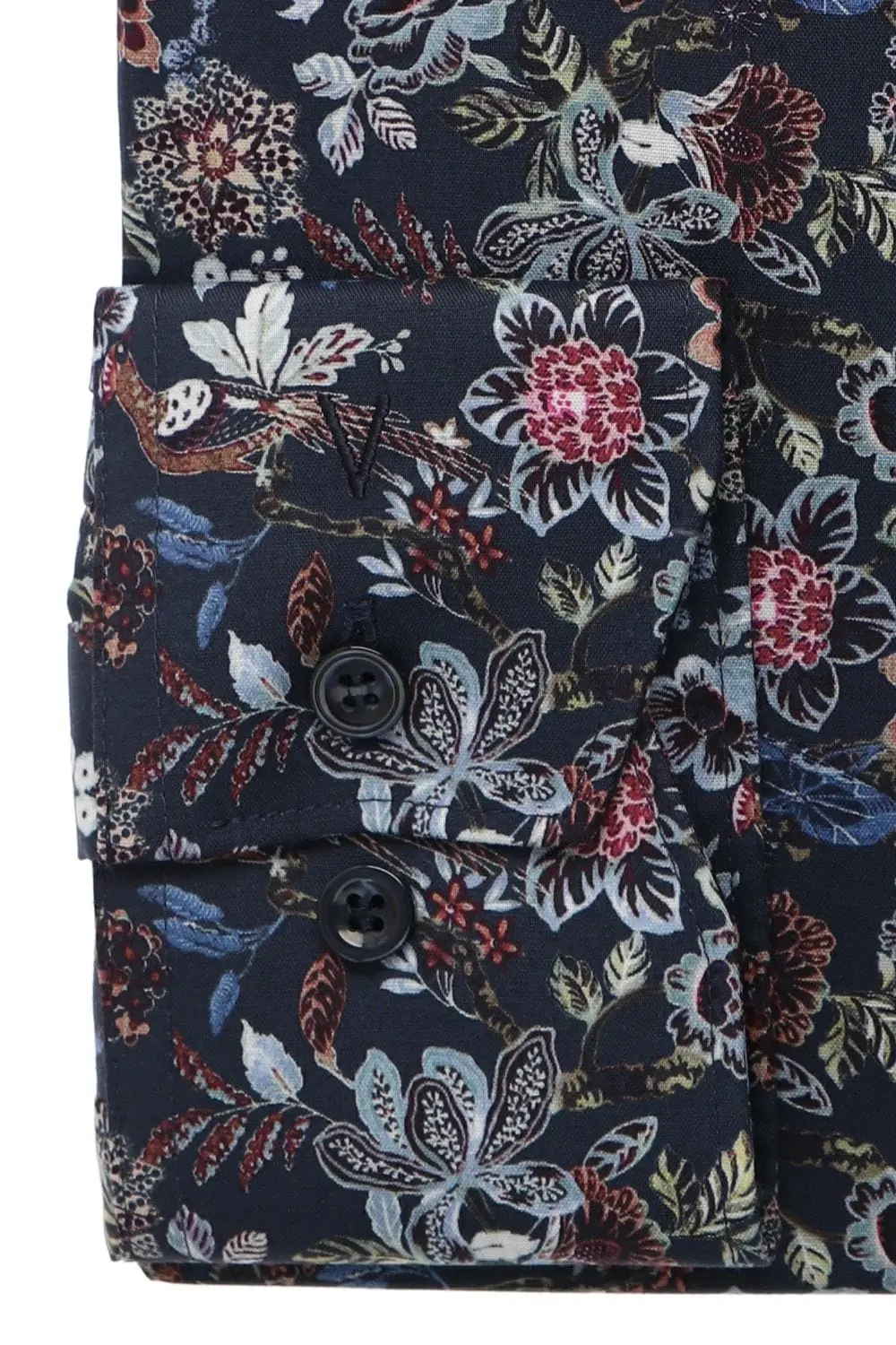 Marvelis grote maat overhemd lange mouw blauw bloem design strijkvrij. Marvelis overhemd lange mouw zonder borstzakje in donkerblauw met meerkleurig bloem design. Overhemd in model comfort fit is gemaakt van 100% katoen strijkvrij.