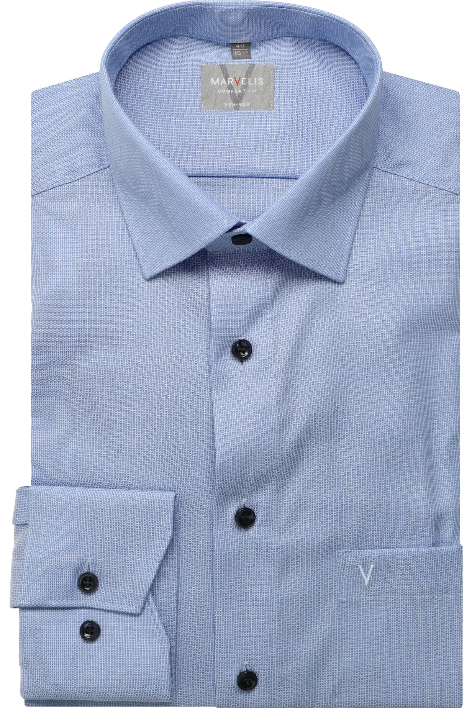 Marvelis overhemd lange mouw met borstzakje in blauw design. Overhemd in model comfort fit is gemaakt van 100% katoen strijkvrij.