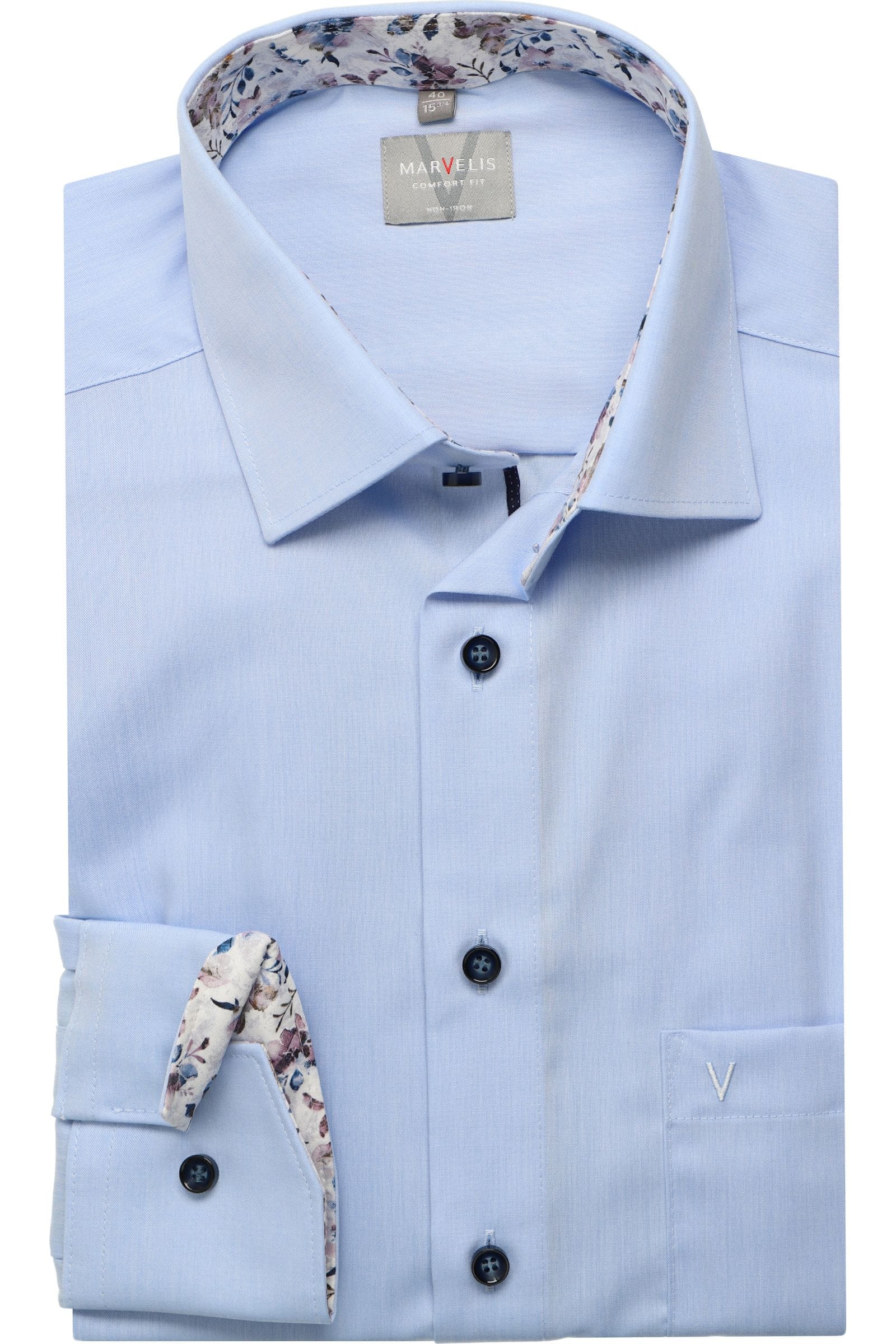 Marvelis overhemd lange mouw met borstzakje in blauw design. Overhemd met in de kraag en manchetten een contrasterend stofje. Overhemd in model comfort fit is gemaakt van 100% katoen strijkvrij.