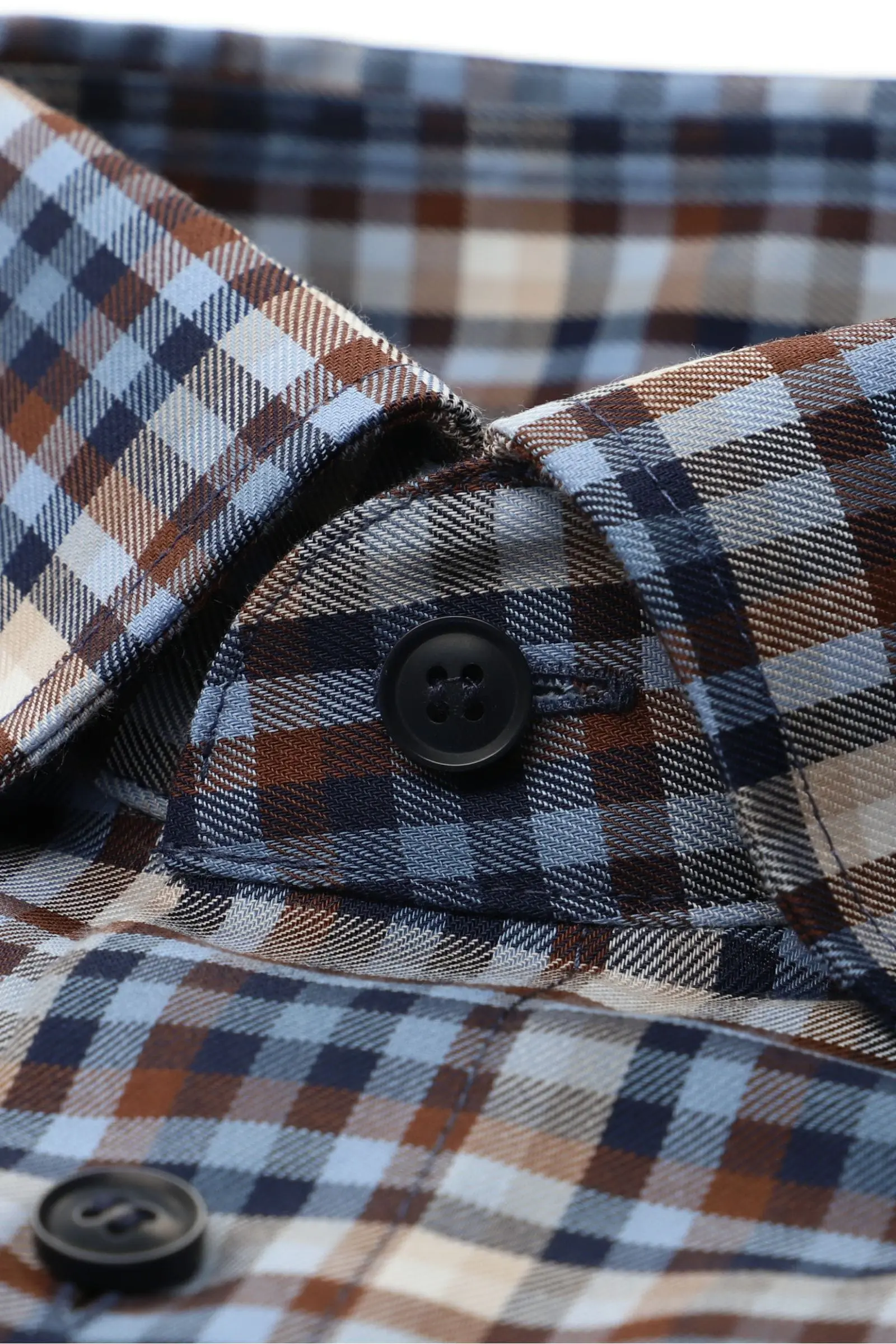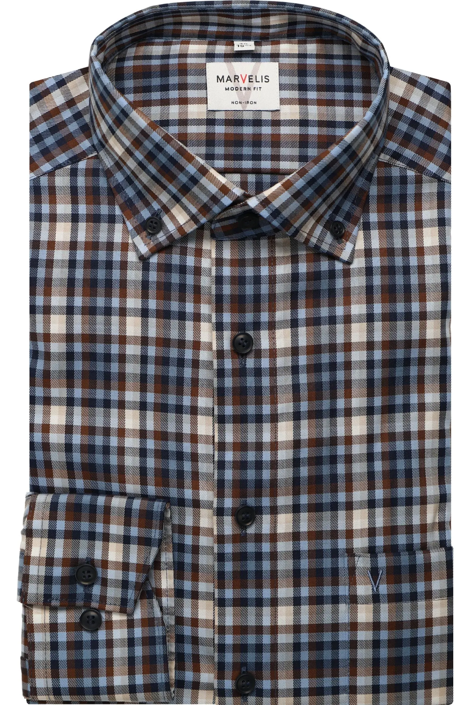 Marvelis overhemd lange mouw met borstzakje in een beige en blauw ruitje. Overhemd in model comfort fit is gemaakt van 100% katoen strijkvrij.