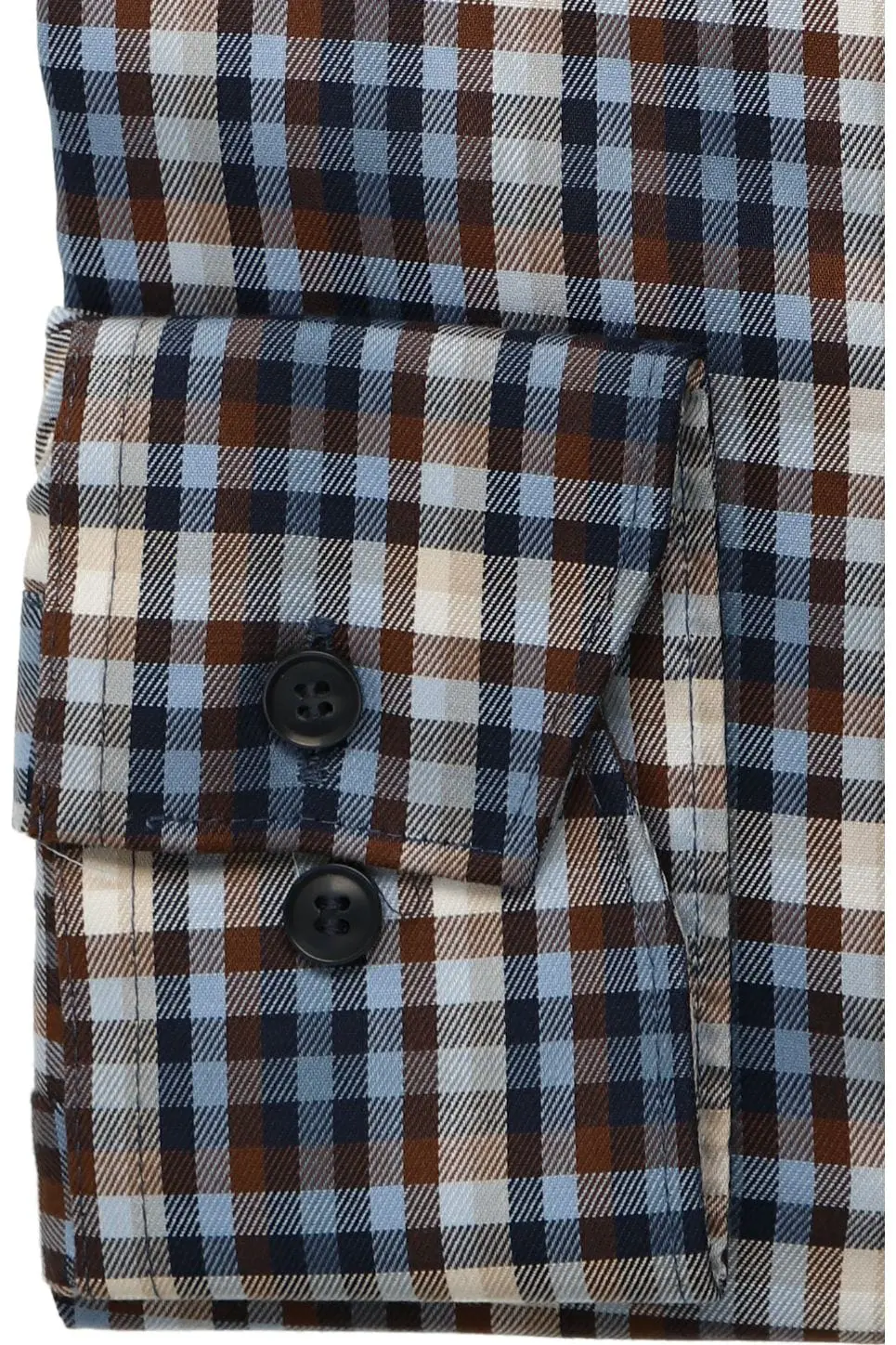 Marvelis overhemd lange mouw met borstzakje in een beige en blauw ruitje. Overhemd in model comfort fit is gemaakt van 100% katoen strijkvrij.