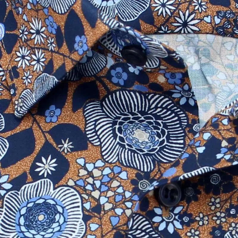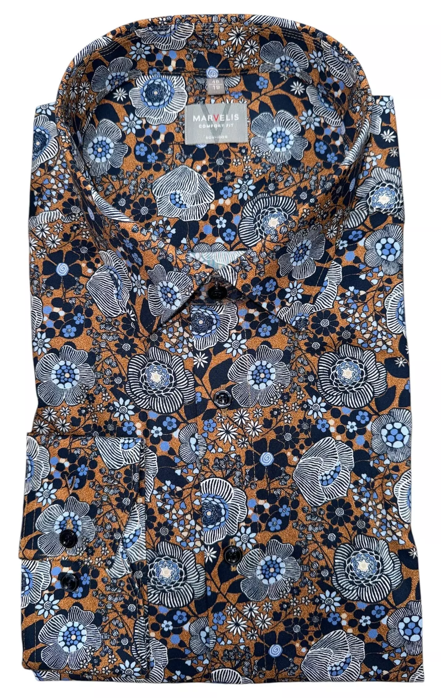 Marvelis overhemd lange mouw blauw en camel fantasie design. Overhemd met borstzakje in model comfort fit is gemaakt van 100%katoen strijkvrij.