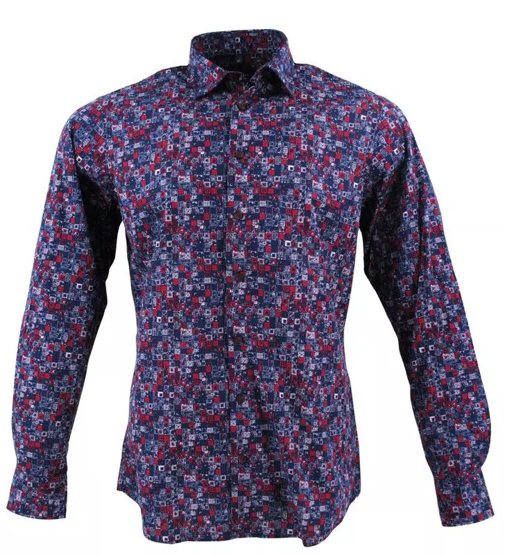 Marvelis overhemd lange mouw blauw, rood en wit fantasie patroon. Het overhemd heeft lange mouwen zonder borstzakje. Overhemd in model casual fit ( dit model valt het zelfde als comfort fit ze noemen deze serie casual fit omdat deze niet strijkvrij zijn) is gemaakt van 100%katoen easy care.