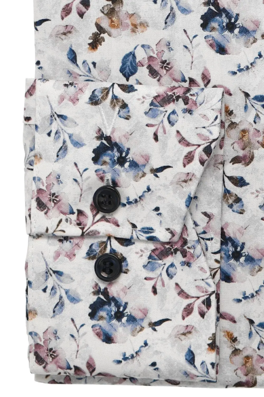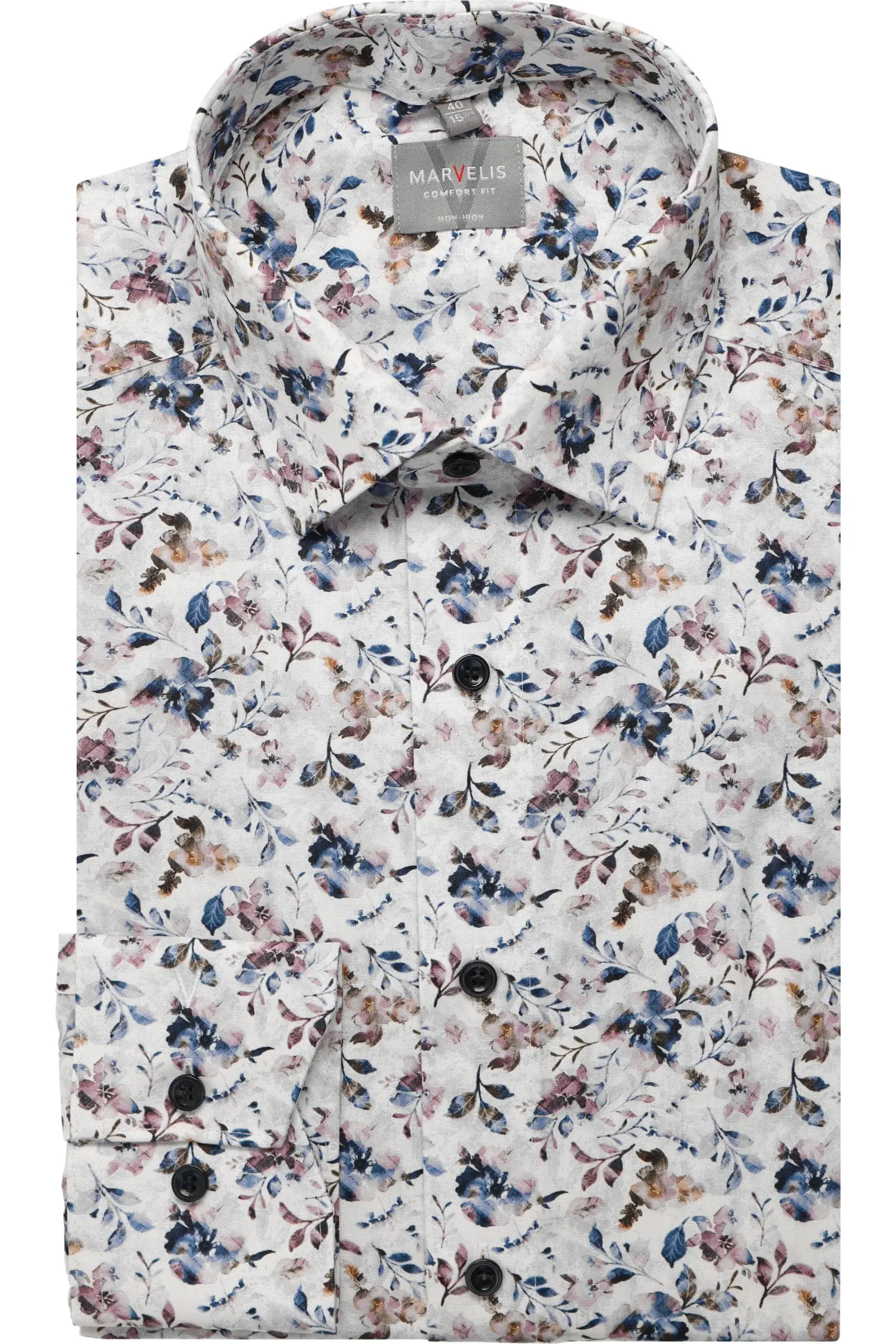 Marvelis overhemd met lange mouw zonder borstzakje in een blauw, wit en roze bloem design. Overhemd in model comfort fit is gemaakt van 100% katoen strijkvrij.
